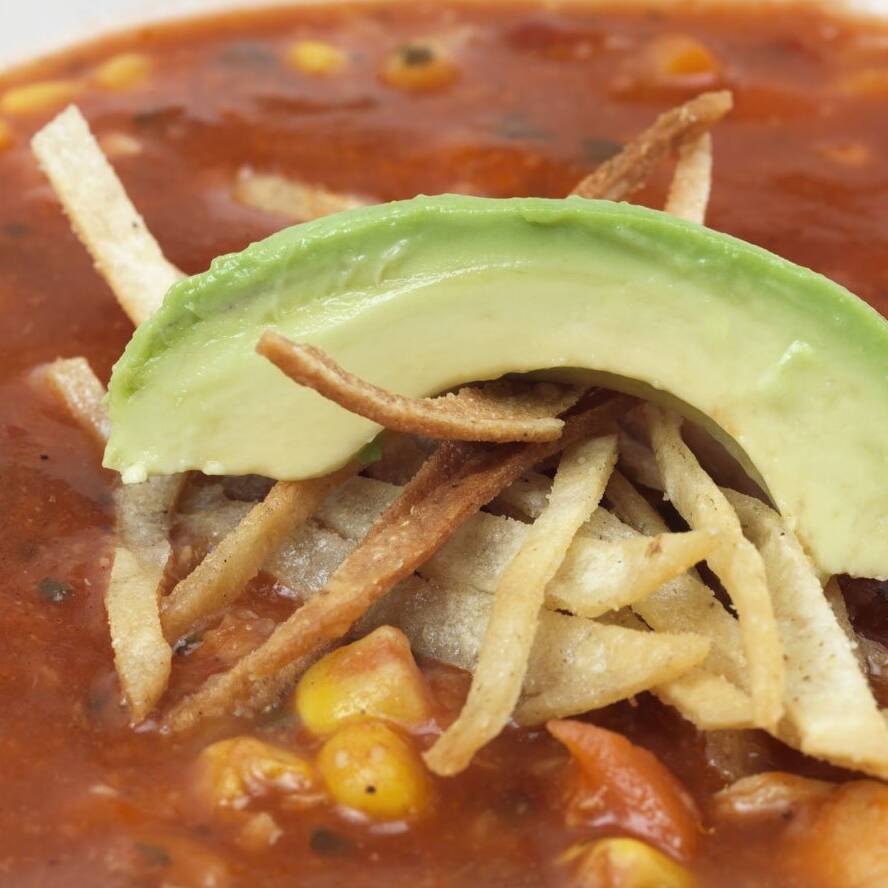 Nachos con frijoles, queso, pollo asado y guacamole.