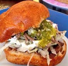 Pan frito relleno con frijoles lechuga carne crema y queso