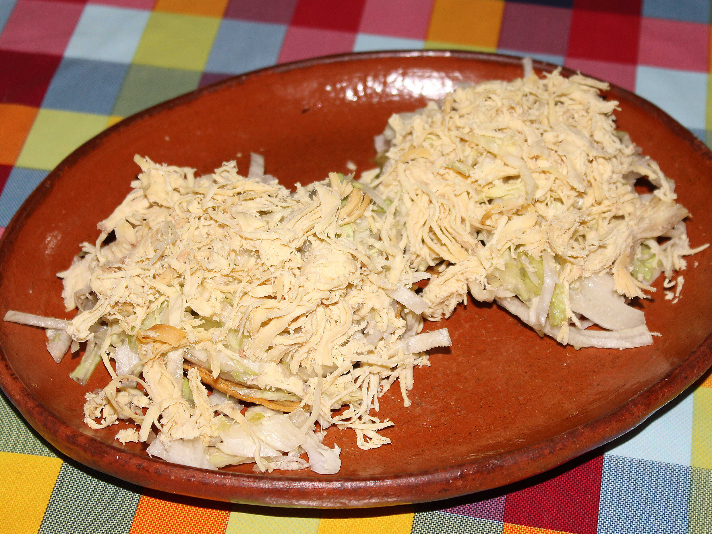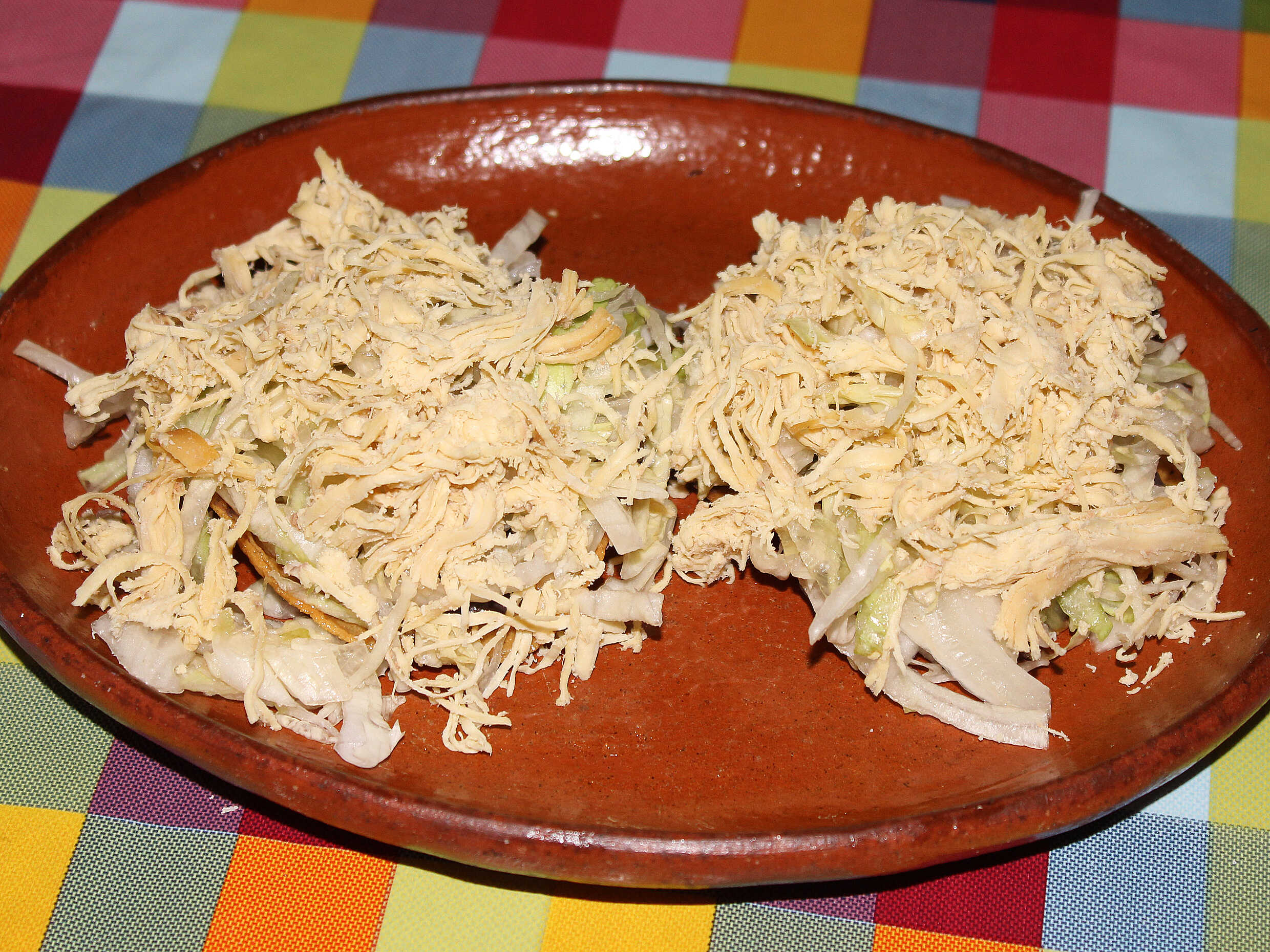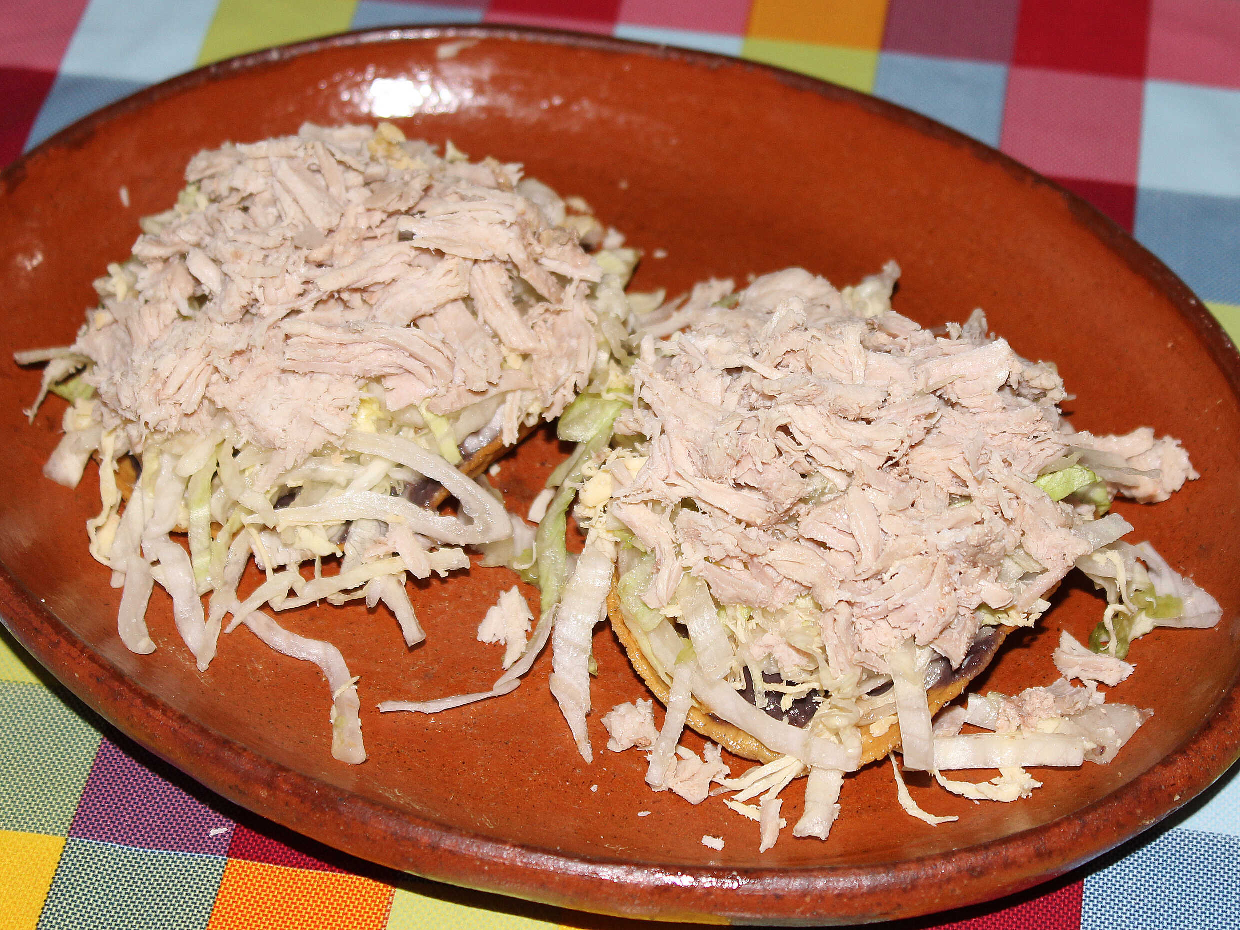 De masa frita preparada con frijoles lechuga crema queso y chicharrón (tlalito)