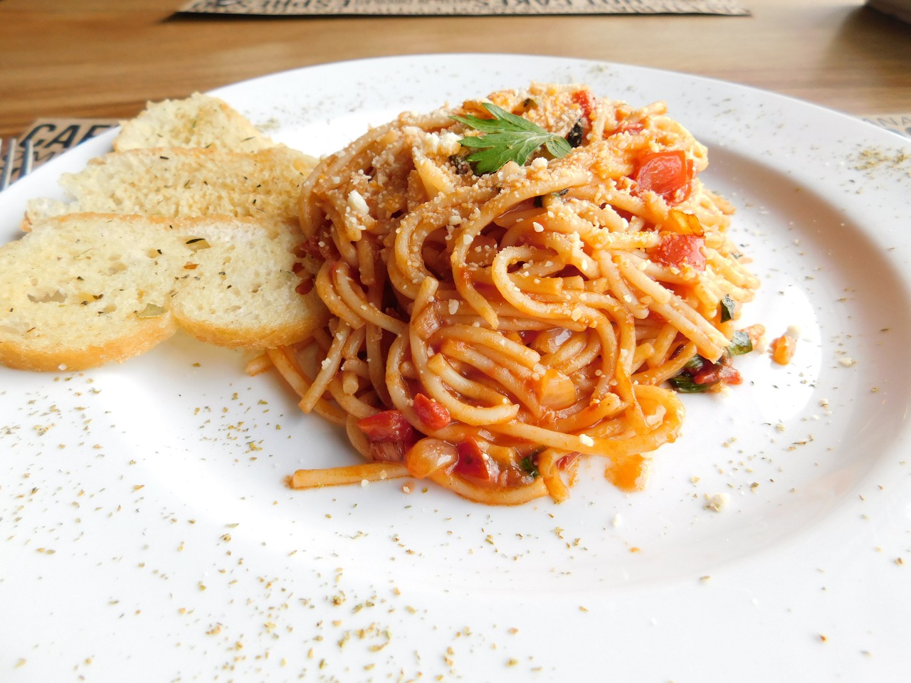 Spaghetti sazonado con salsa de jitomate, carne molida y un toque de vino blanco.