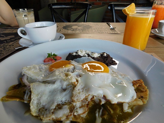Enchilada verde, enfrijolada, enchilada roja rellenas de huevo o pollo.