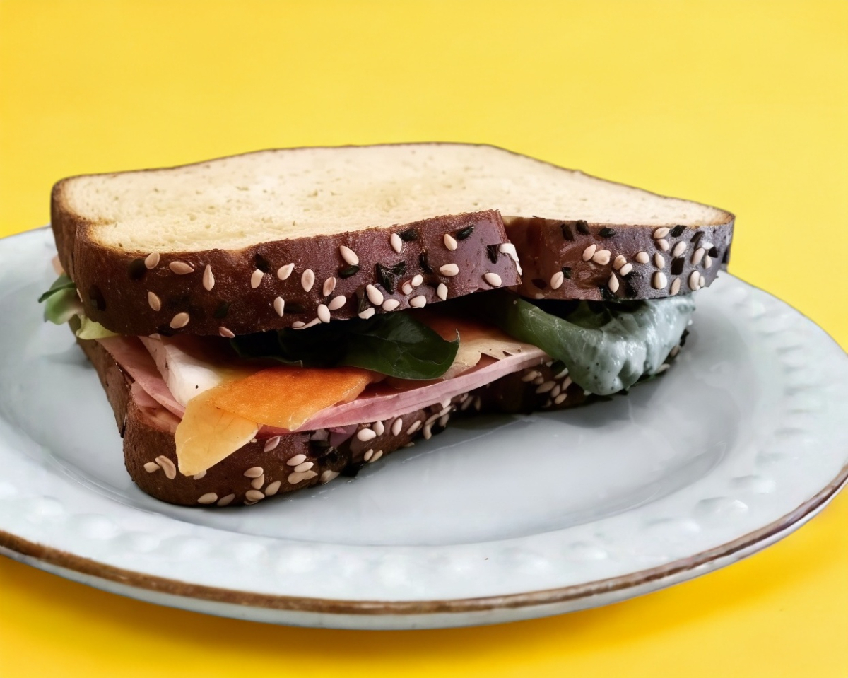Pan integral, jamón de pavo y queso panela.