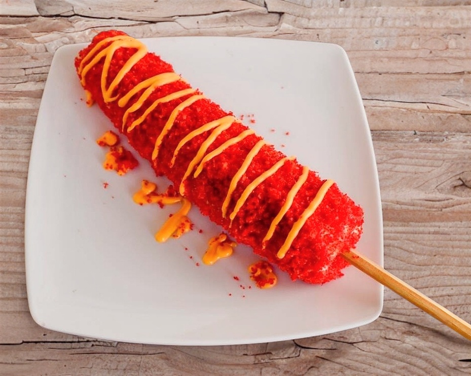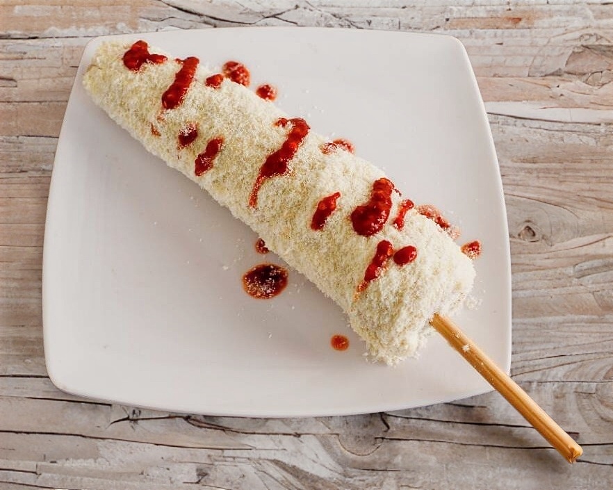 Preparado con mayonesa, queso añejo, limon y picante al gusto. Una combinacion picosa, salada y dulce.
