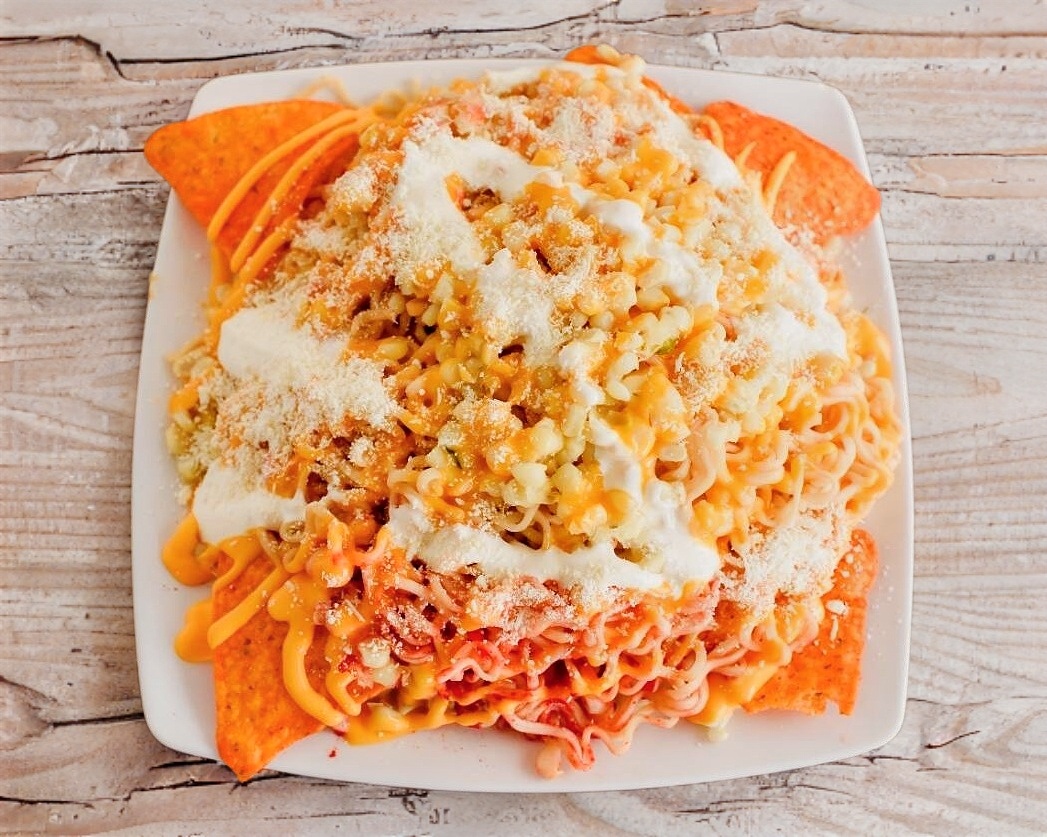 Preparado con 1 maruchan y 1 sabrita a eleccion, mayonesa, queso añejo, limon, queso de nachos, crema y picante al gusto. Máximo para dos personas.