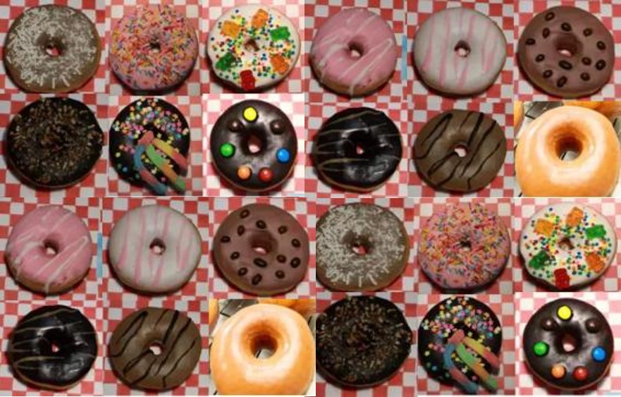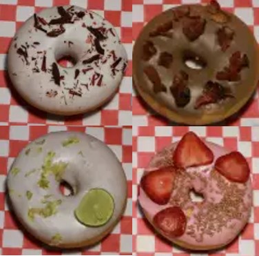 4 donas glaseadas, 4 decoradas y 4 exóticas a elección