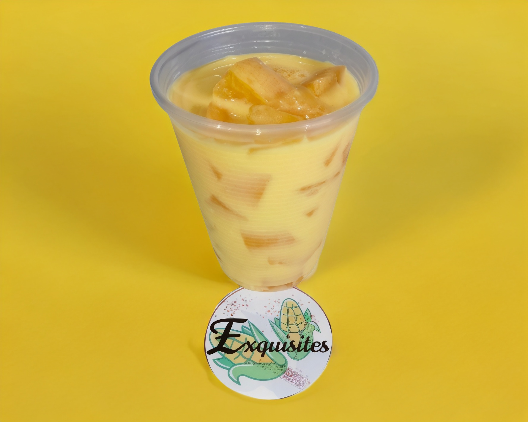 Duraznos en cubos endulzados y bañados de rompope coronado.
