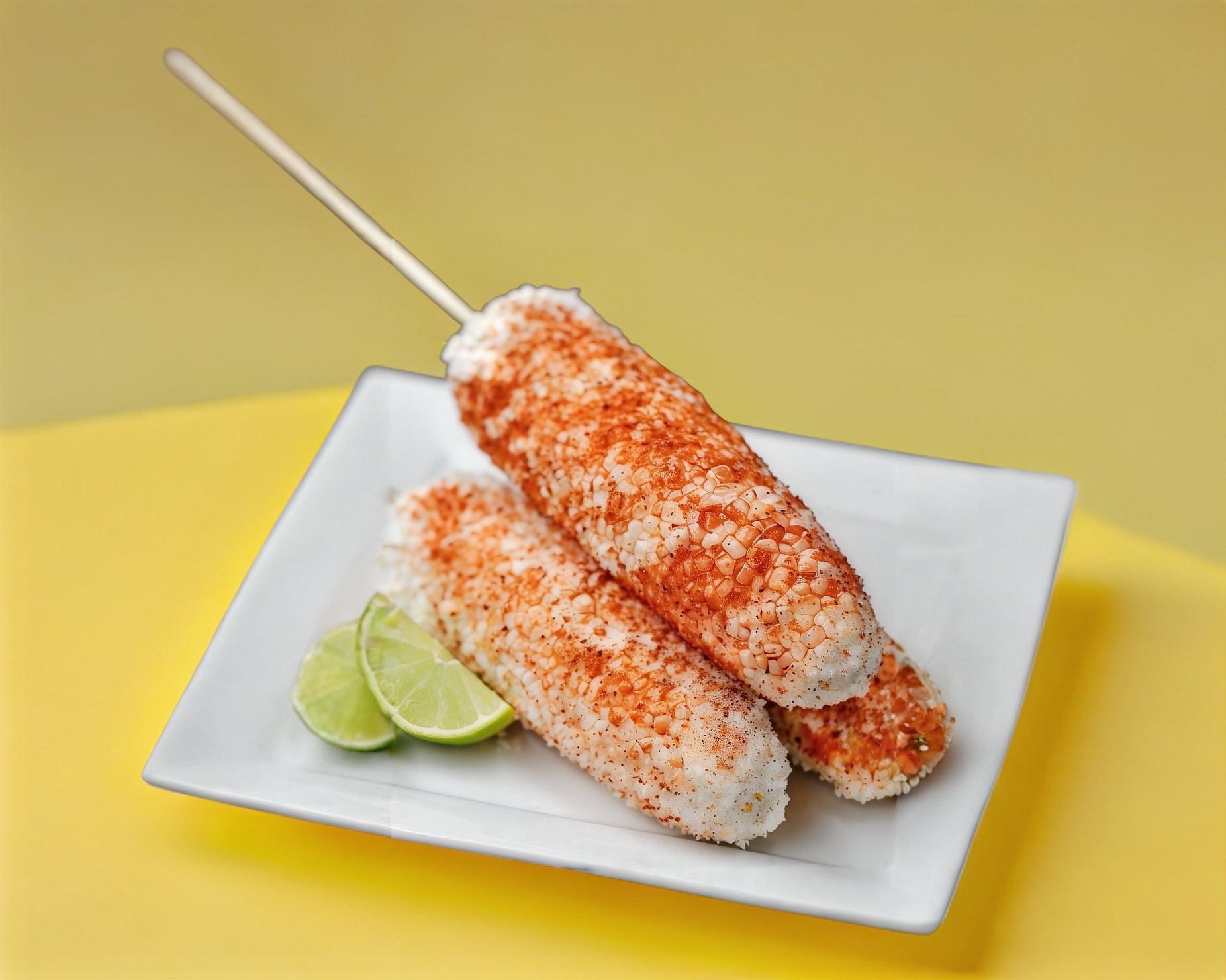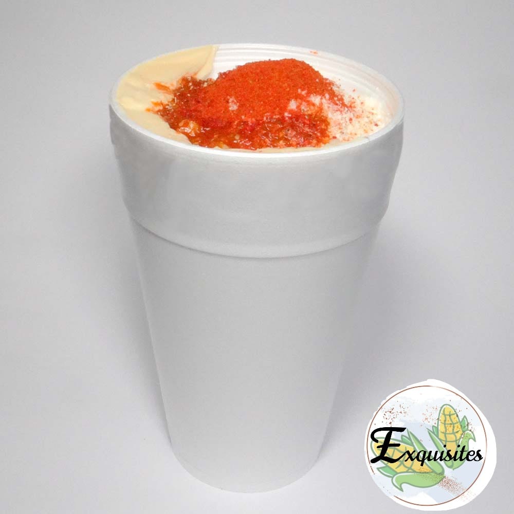 Rancheritos chile y especias con granos de elote, limon ,mayonesa, queso añejo rallado, picante opcional.