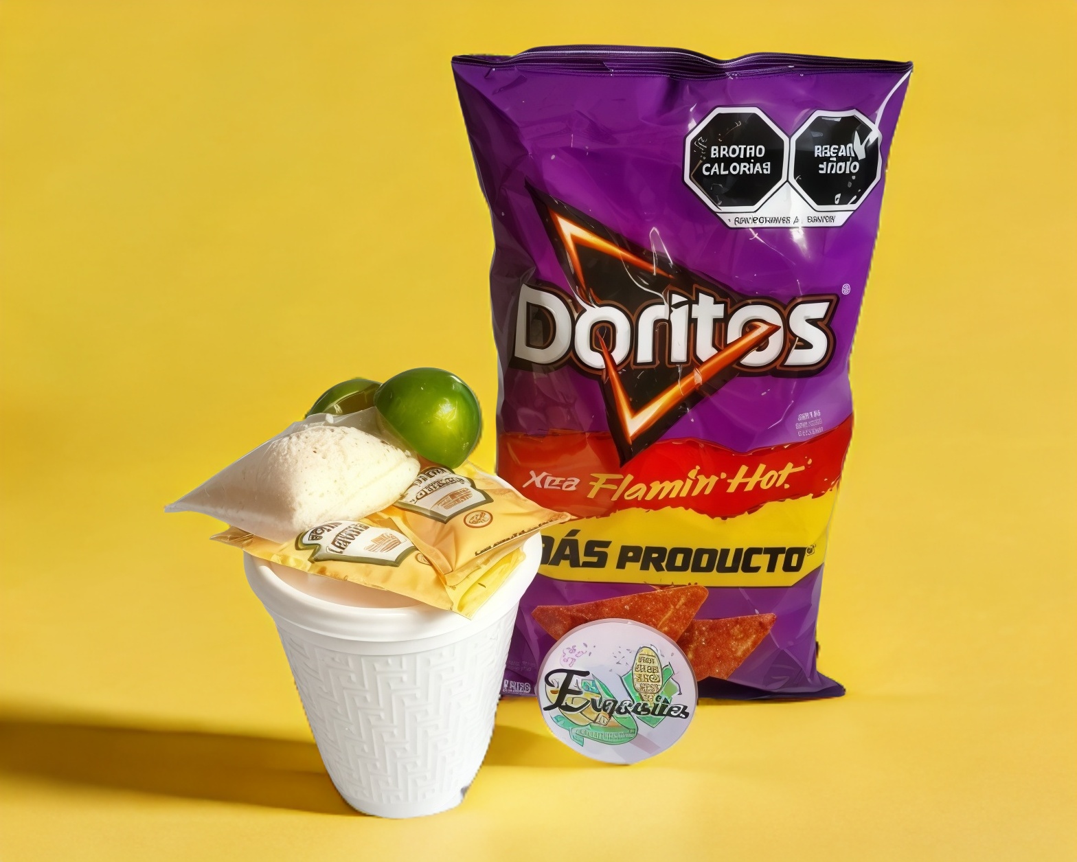 Doritos flamin-hot,granos de elote, limón, mayonesa, queso añejo rallado y picante (a elegir)