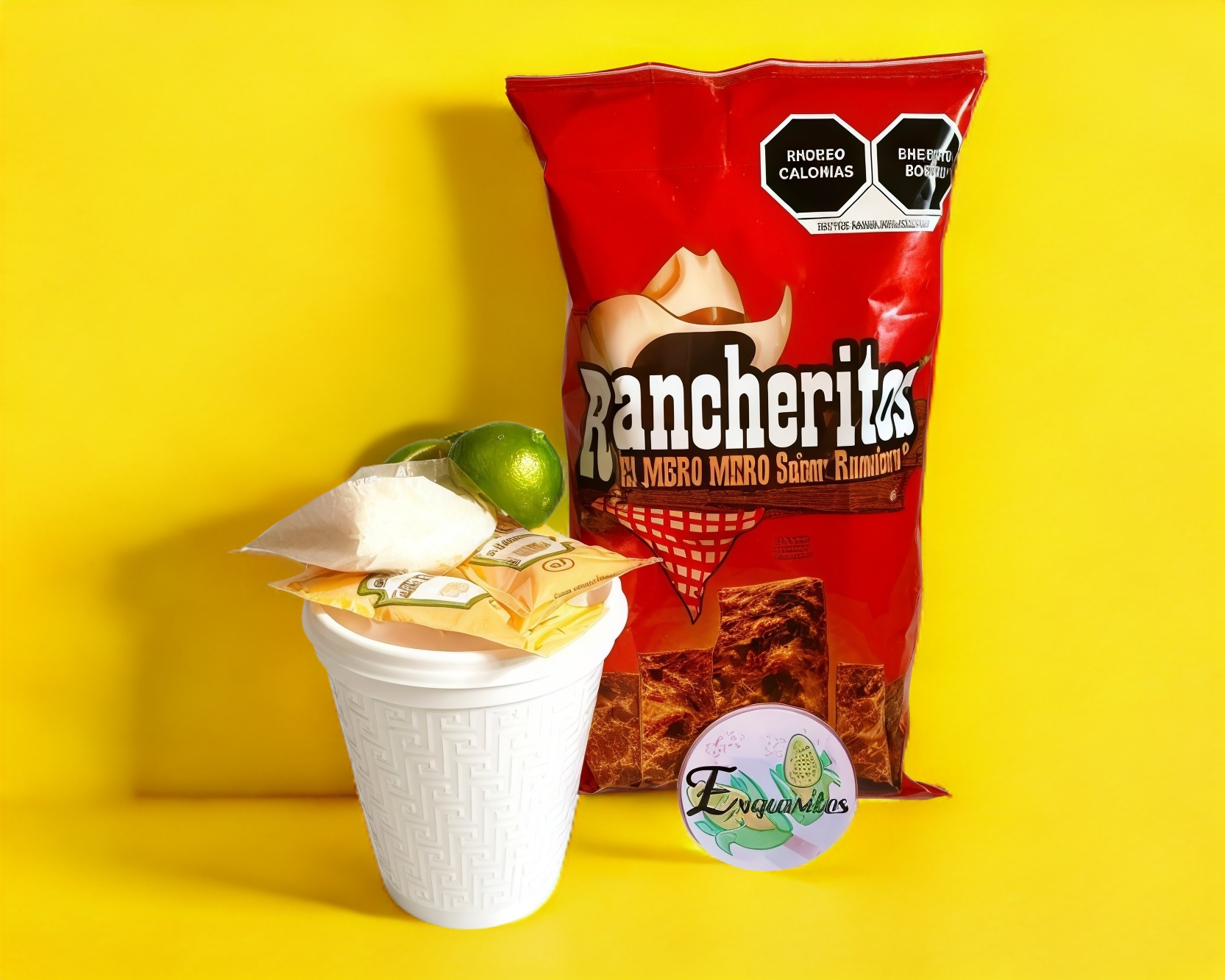 Fritos sal y limón con granos de elote, limón, mayonesa, queso añejo rallado, picante (a elegir)