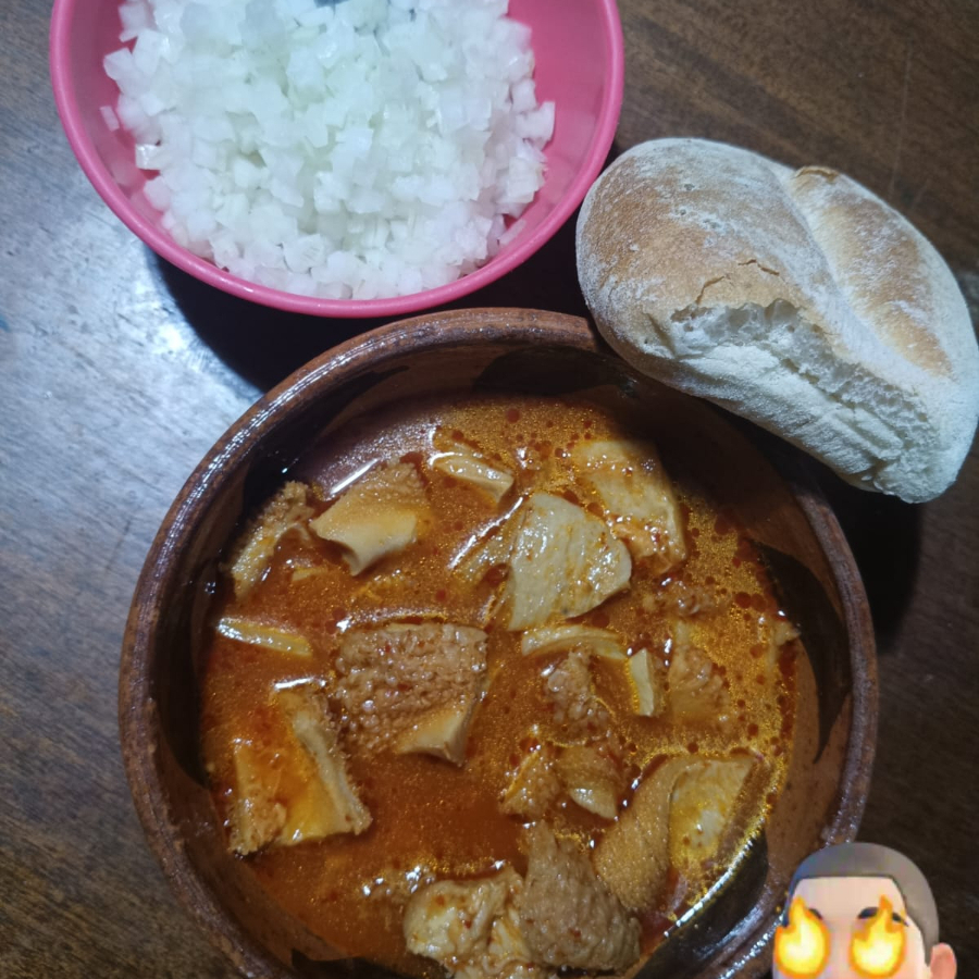 1 LITRO DE MOLE DE PANZA ACOMPAÑADO DE CEBOLLA LIMONES Y 2 TORTAS