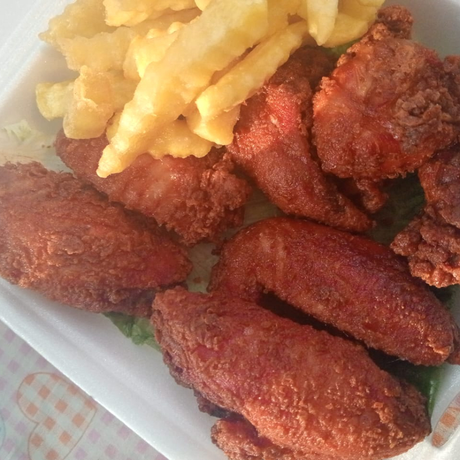 ALITAS CON PAPAS A LA FRANCESA BAÑADAS DE EL ADEREZO QUE ELIGAS