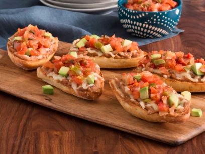Pan tipo mini baguette, mayonesa, aderezo ajo parmesano, cebollita, champiñones, queso, pimientos, bistec de pollo.