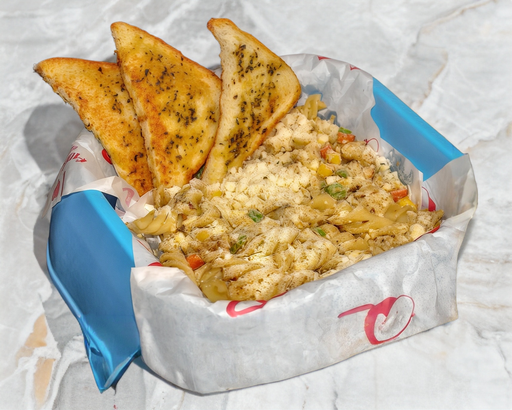 Incluye mix de verduras: zanahoria, ejote, elote y apio, 3 panes tostados sabor ajo y un toque de queso parmesano, aceite de oliva, ajo y una mezcla de chiles secos.