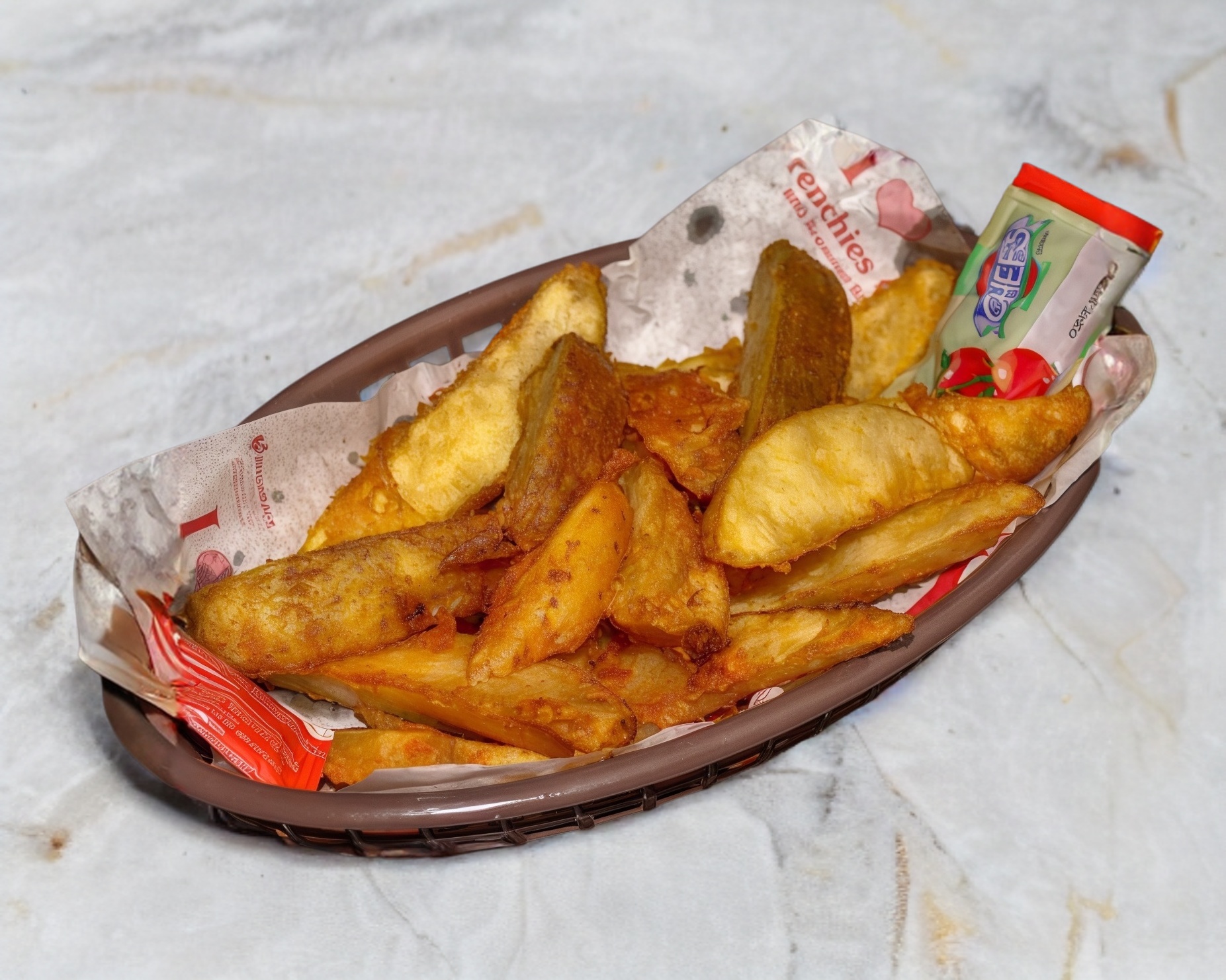 1 Kg de costilla, 3 porción de frijoles, papas gajo y papas a la francesa.