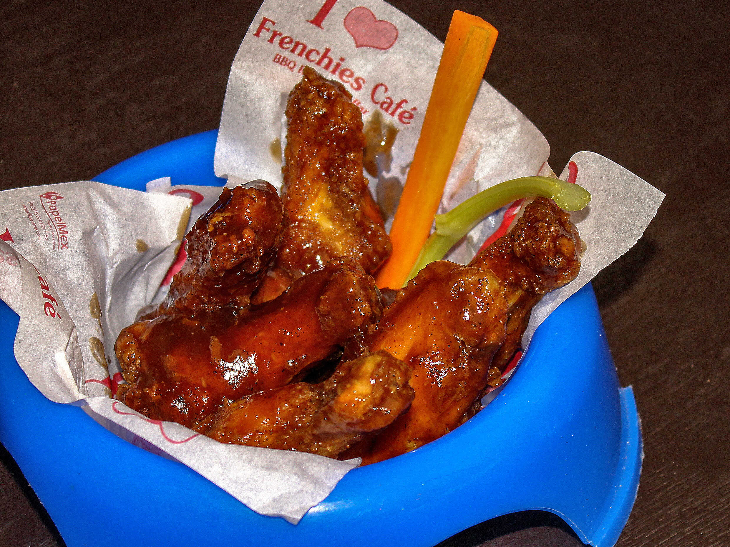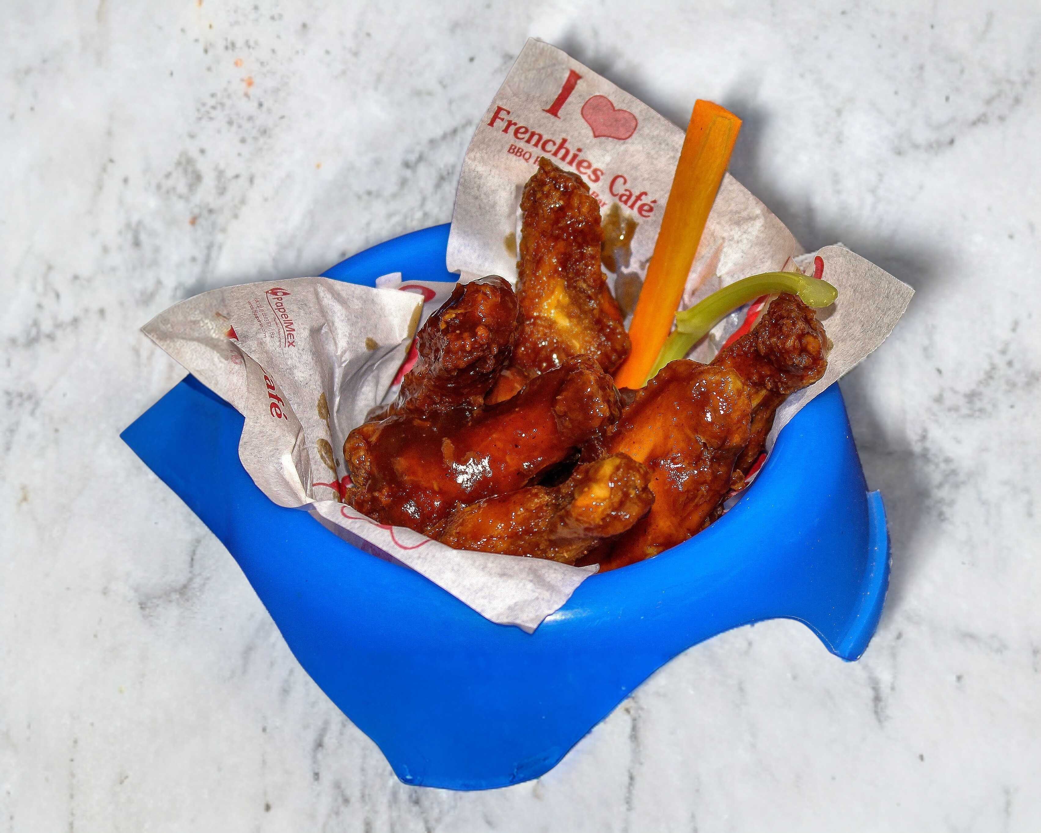 Incluye: alitas, 6 piezas, nuggets, 6 piezas, aros de cebolla, 10 piezas, y papas gajo 300 gr, aderezo ranch o bluecheese.