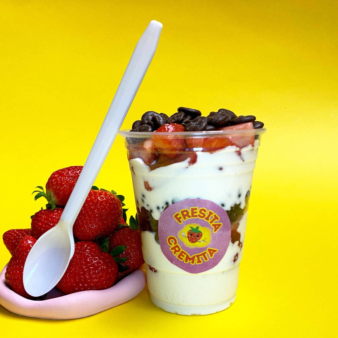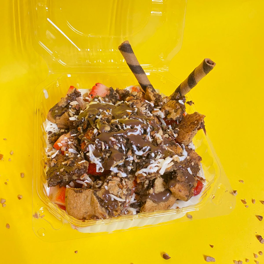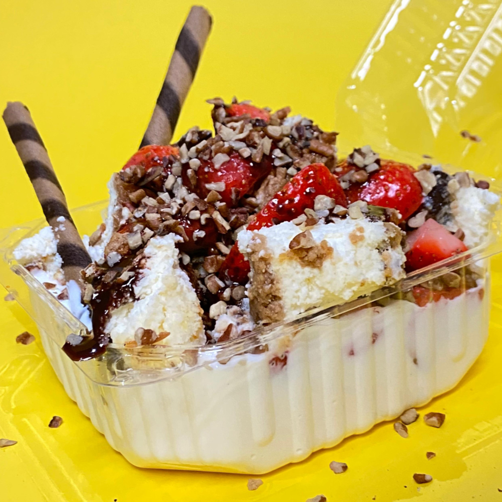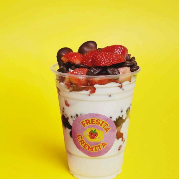 Fresas con yogurt con mango o durazno medianas + 2 toppings