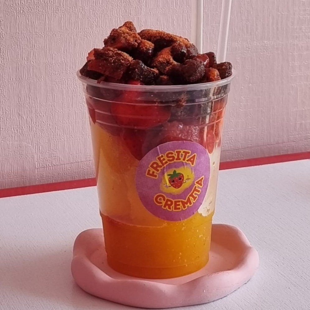 Fresas con crema con mango o durazno chicas + 2 toppings