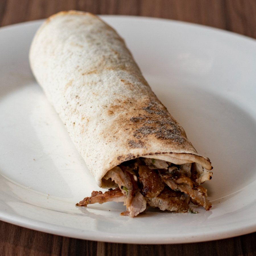 1 pieza con arroz, frijoles, cilantro, cebolla, carne arabe, queso manchego y guacamole.
