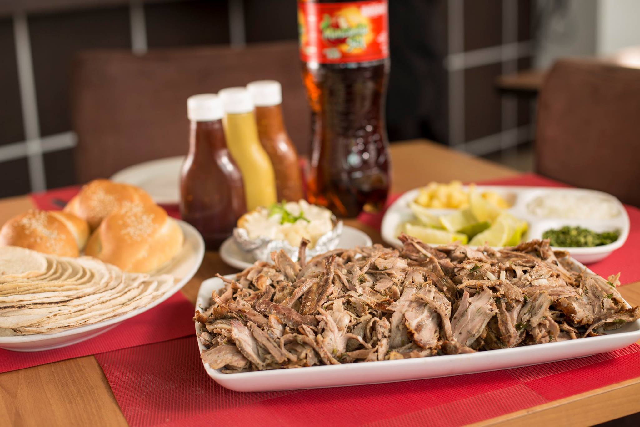 Carne al pastor, 1 refresco de 2 litros, 3 cemitas, tortillas de maíz, tortilla de harina, salsas, cilantro, cebolla, piña y limón.