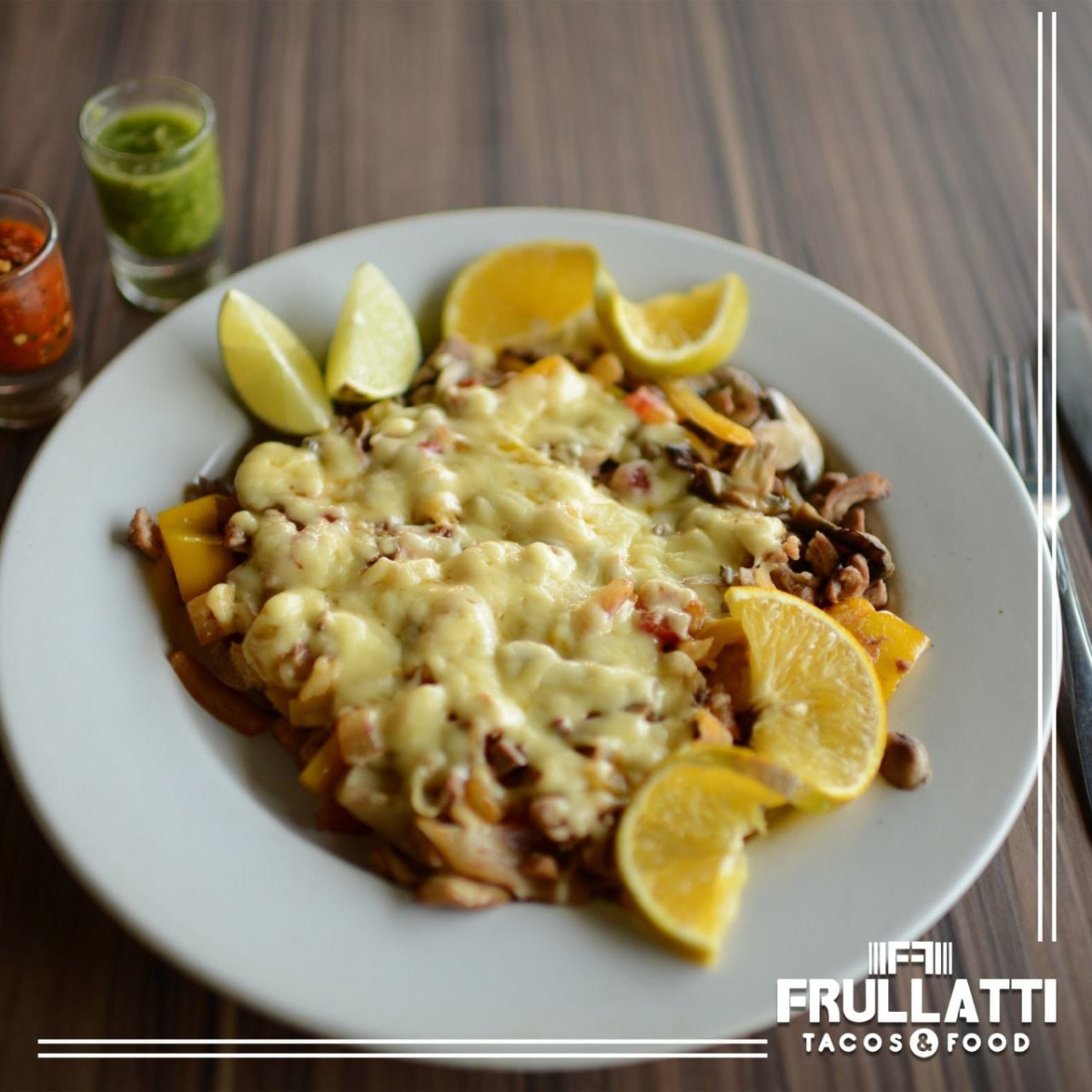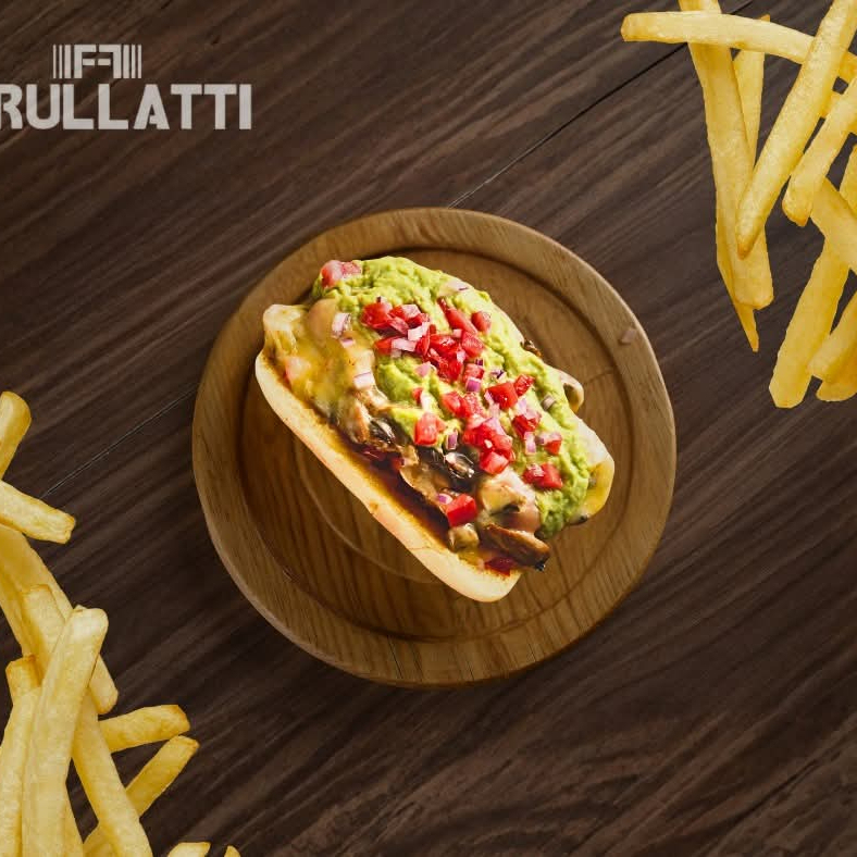 Salchicha, queso manchego, champiñones, guacamole, jitomate, cebolla, catsup, mostaza.