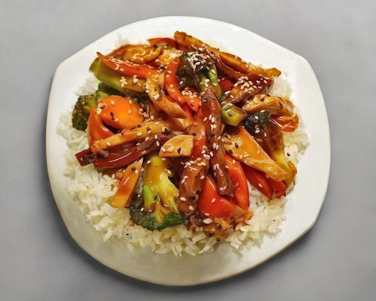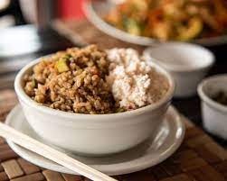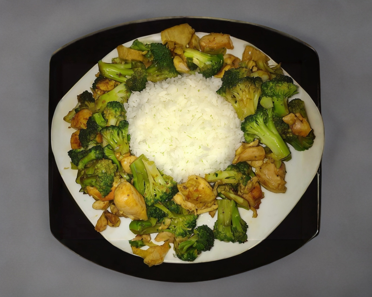 Para los amantes del GYM, arroz al vapor acompañado de la proteína de su elección.