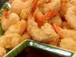 5 Piezas de camarones abiertos en mariposa, rellenos de arroz, queso, cebolla y capeados.