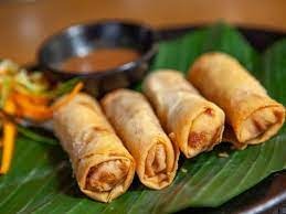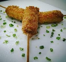 Empanadas rellenas de germen de soya con pollo y bañadas en salsa agridulce.