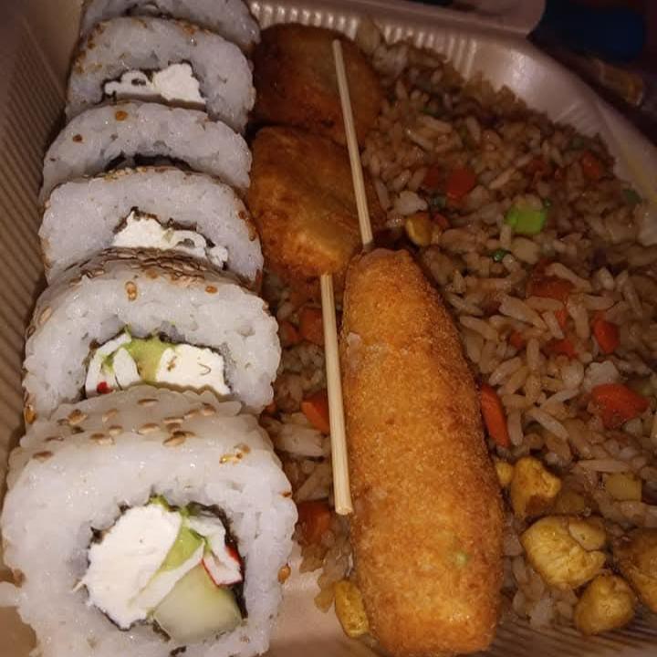 1 California Tradicional + Empanizado maki + Yakimeshi Combinado (res y pollo)