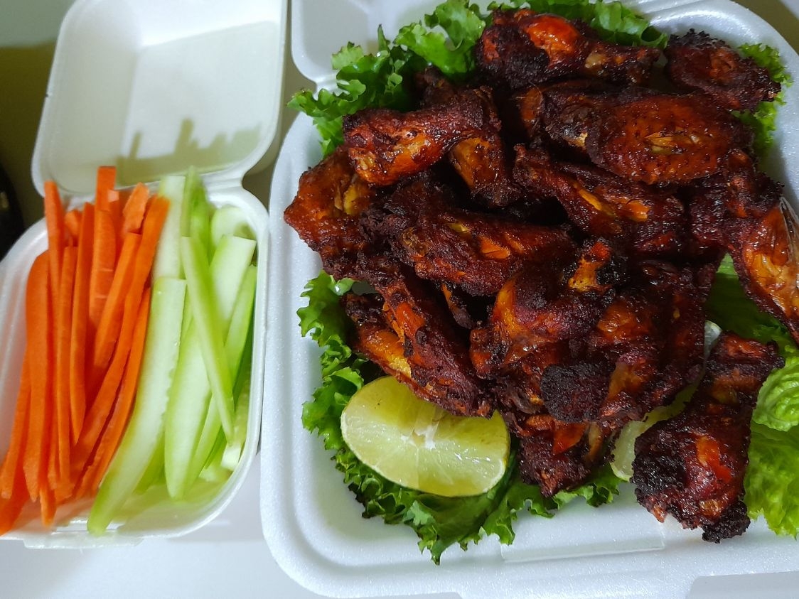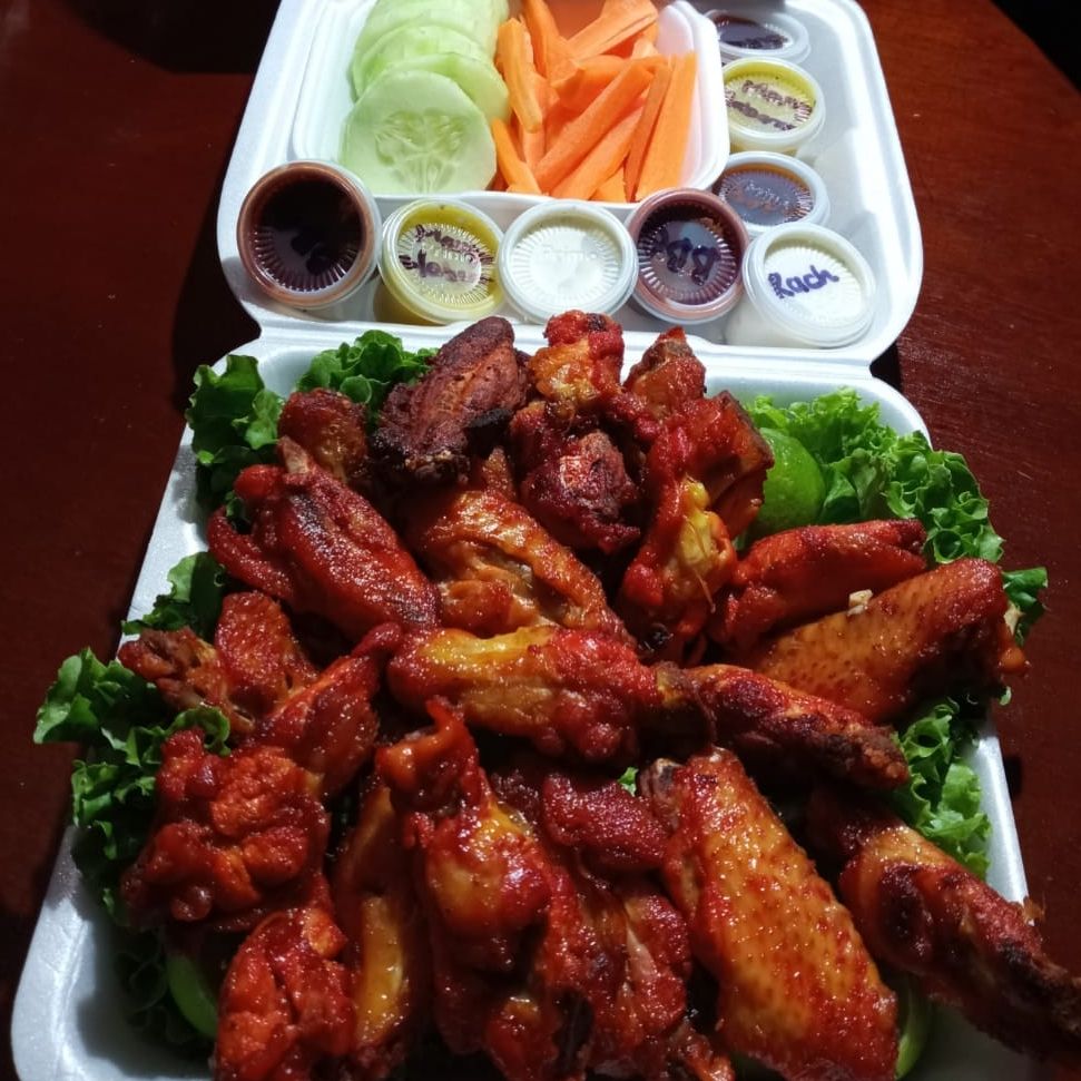 Alitas18 piezas, lechuga, zanahoria, y pepino, 3 Aderezos