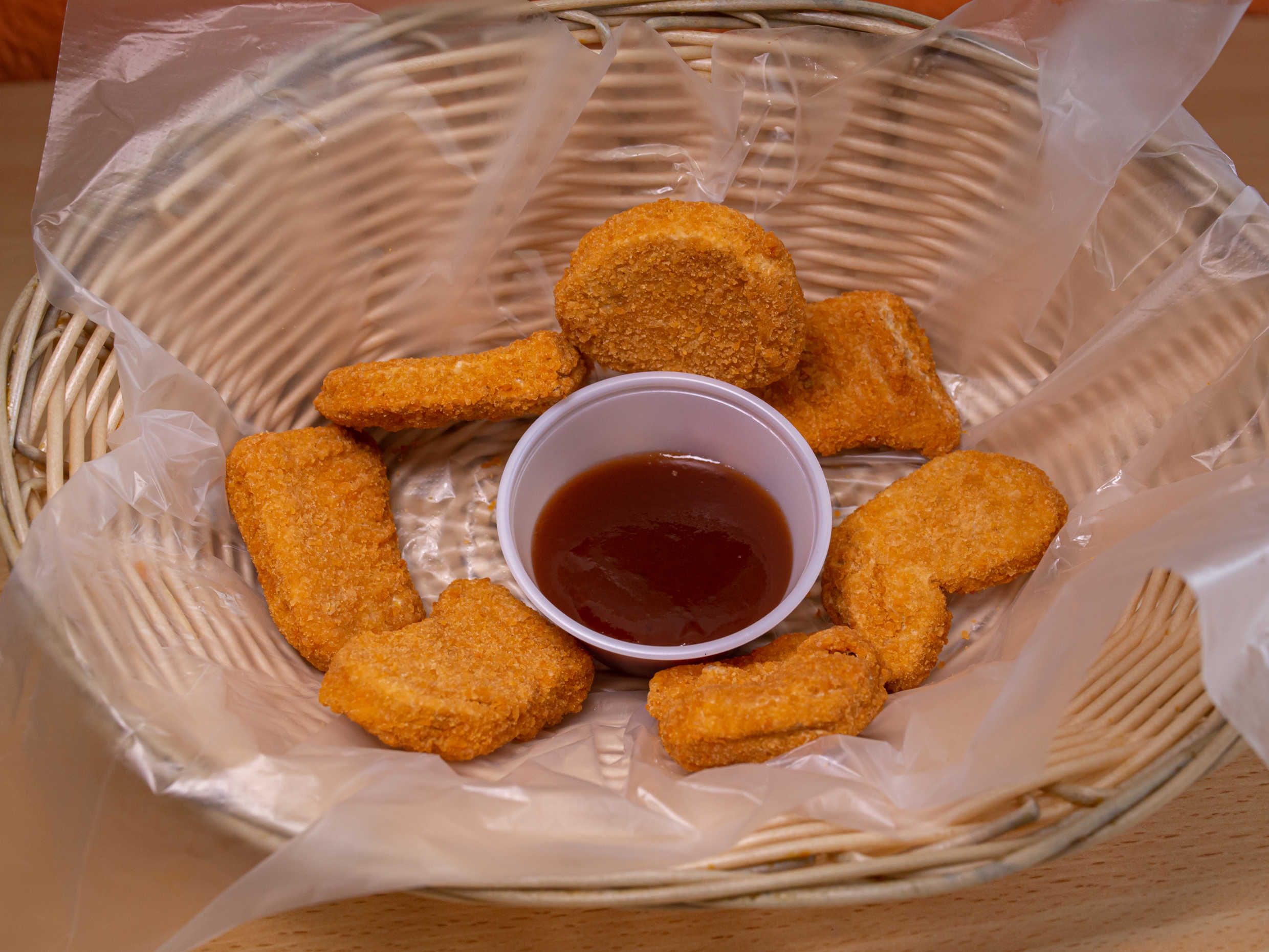7 piezas de Nuggets de Pollo acompañados con catsup.