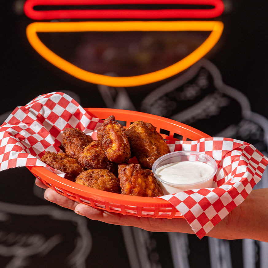 250 gr de boneless marinados en salsa bufalo (incluye aderezo blue cheese))