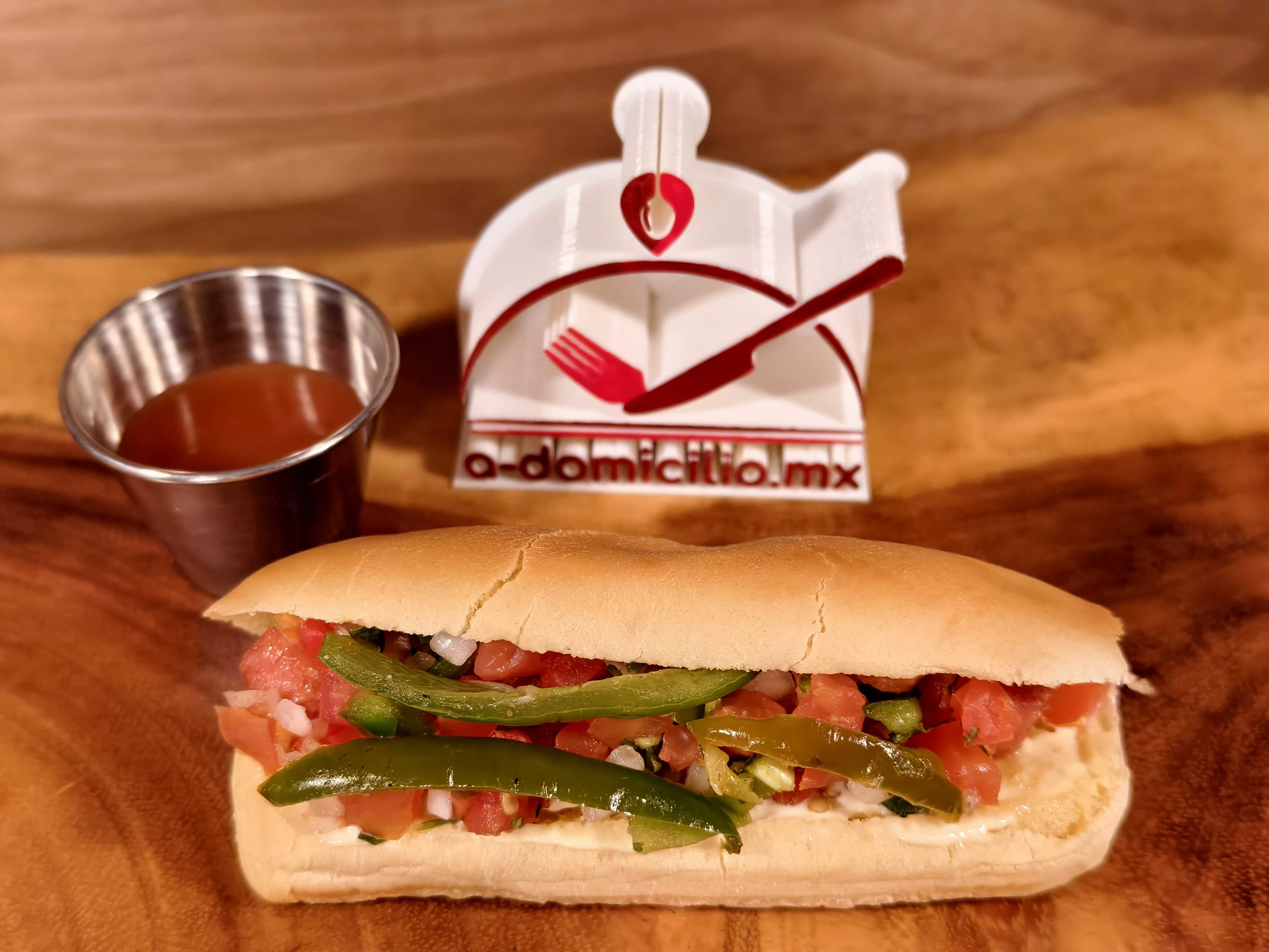 Hot Dog con salchicha de Pavo acompañado de mayonesa,mostaza,catsup,lechuga,jalapeño y jitomate