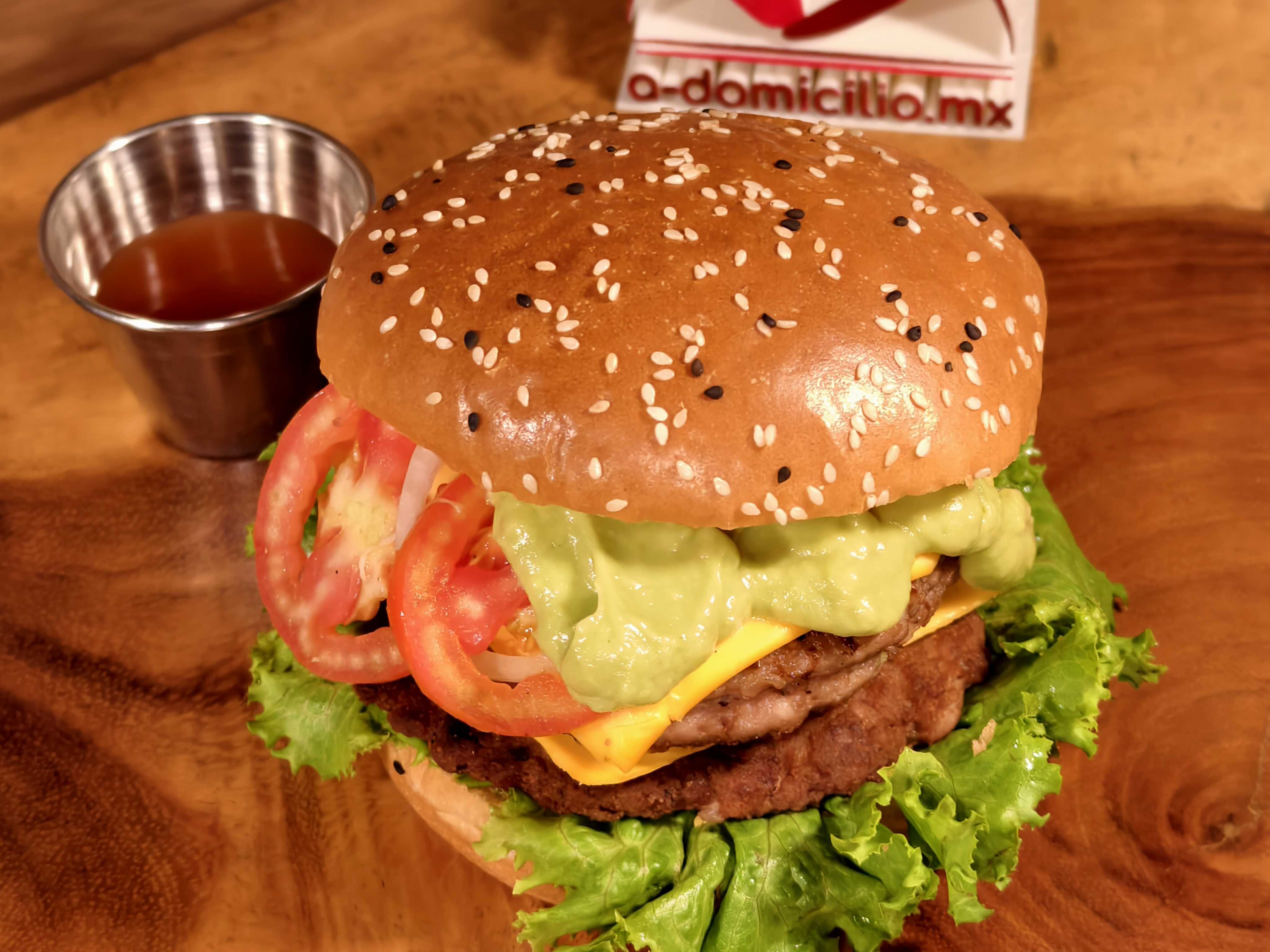 Hamburguesa con dos carnes de 90-110g, Queso Americano, Vegetales y Guacamole