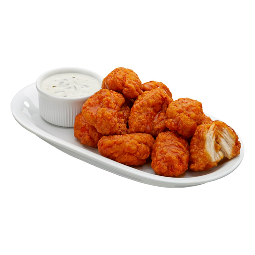 250 g de boneless bañadas en la salsa de tu elección, acompañadas de aderezo ranch.