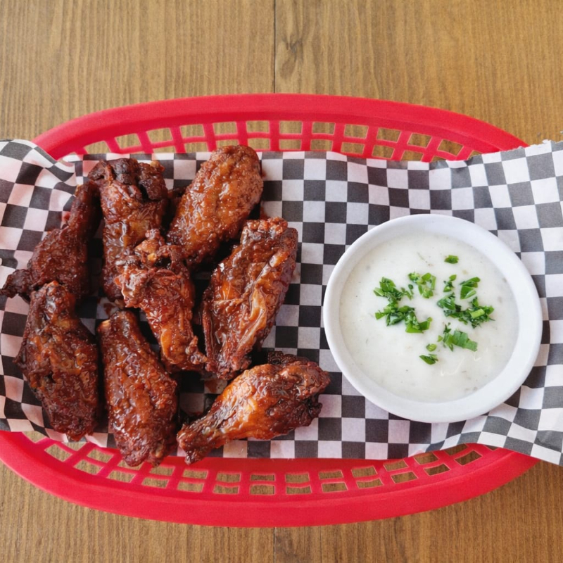 350 g de alitas de pollo bañadas en la salsa de tu elección, acompañadas de aderezo ranch.