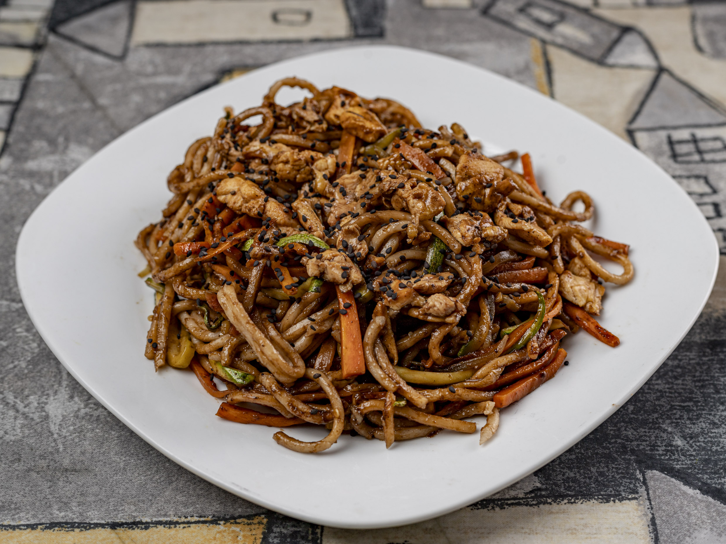 Pasta udon acompañada de verduras a la plancha y bañado en salsa teriyaki. Acompañado de la proteína de tu elección.