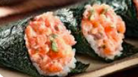 5 Bolitas de arroz empanizadas rellenas de queso philladelphia y proteina a elegir (pasta tampico, camaron o pulpo)