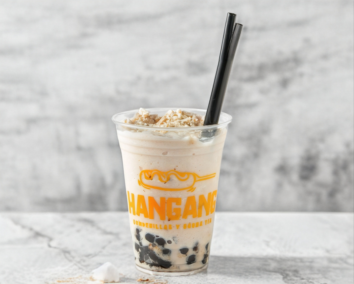 Frappe a base de leche y calpis coreano con perlitas de tapioca.