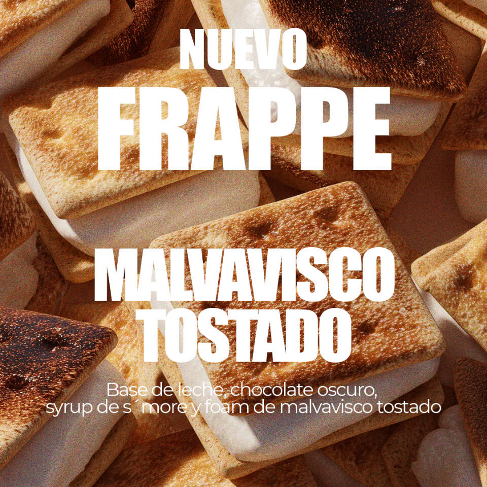 Frappe de chocolate y syrup de s’mores a base de leche con tapioca y un foam de malvavisco tostado.