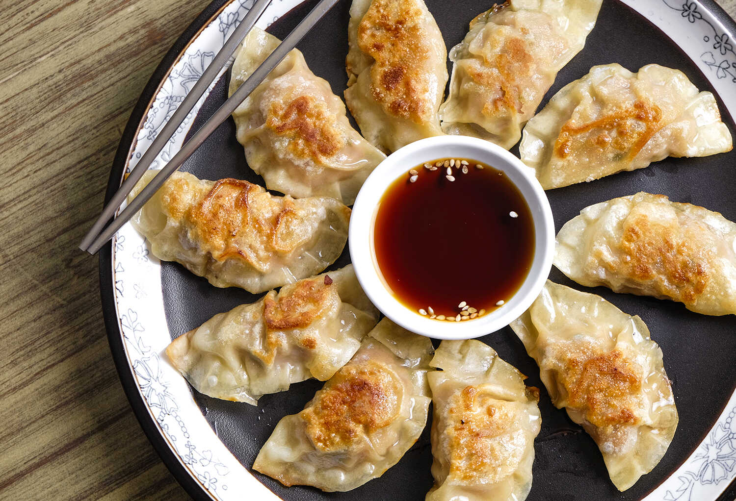 Plato de Mandu acompañado de verduras bañado con salsa de pasta de chile agridulce.