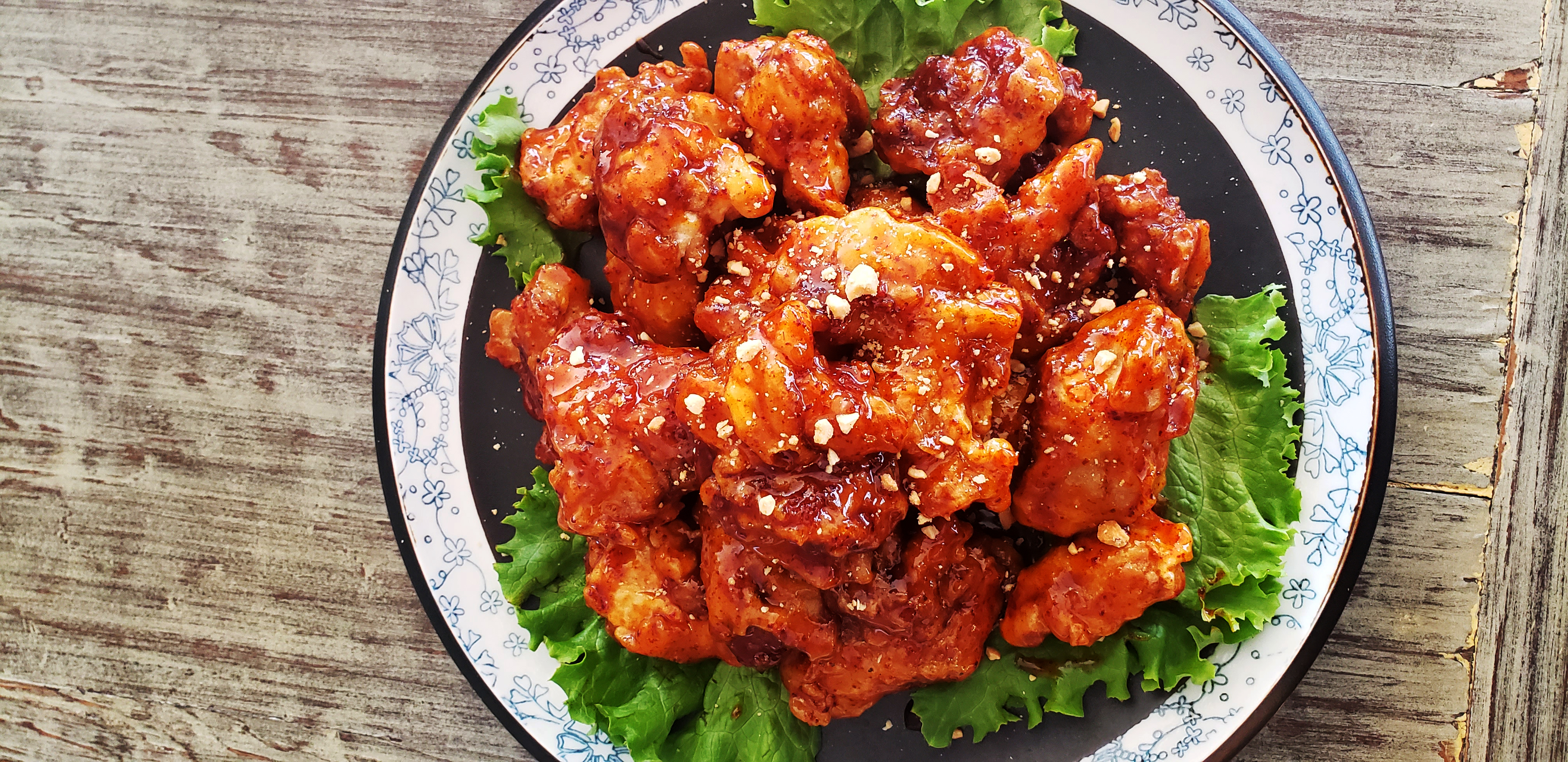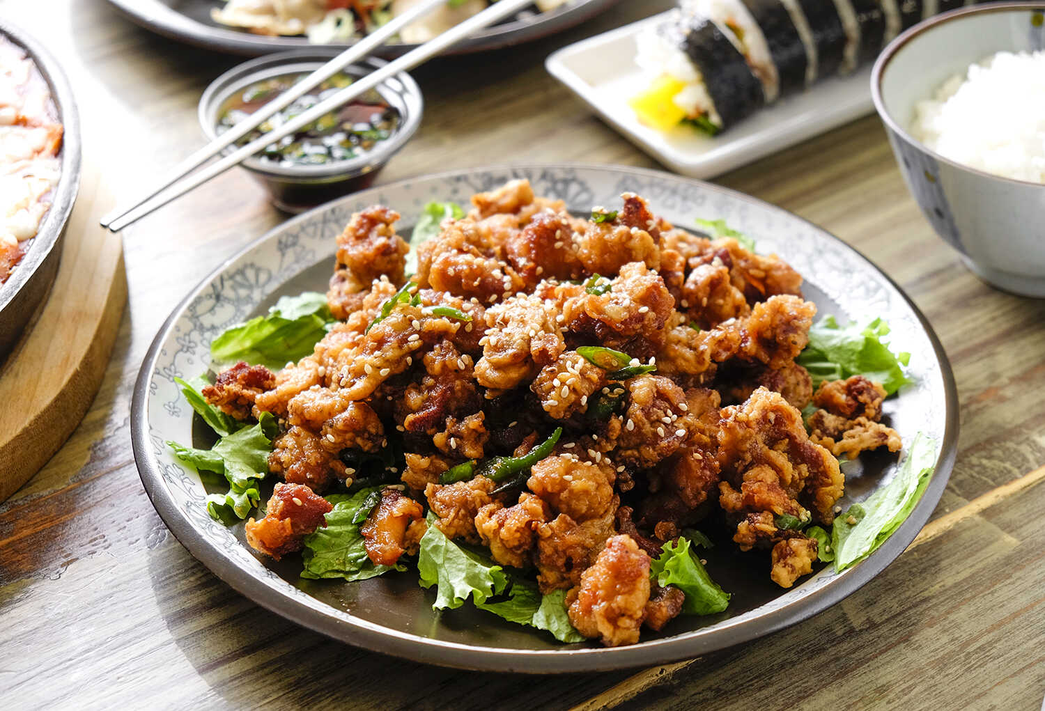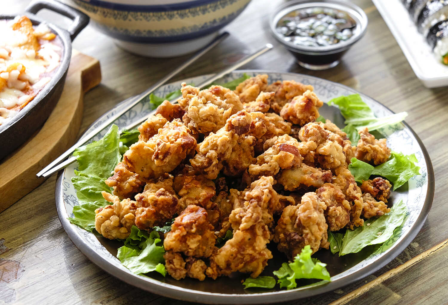 Pollo frito sin hueso estilo coreano.