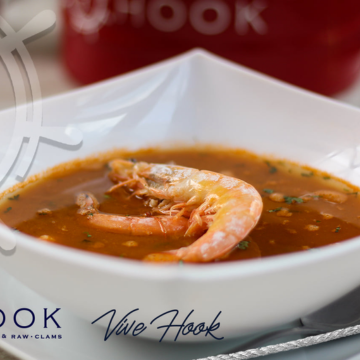 Camarón cocido del golfo crujiente, fresco con cebolla, jitomate, cilantro, pepino, aguacate y un toque de salsa hook.