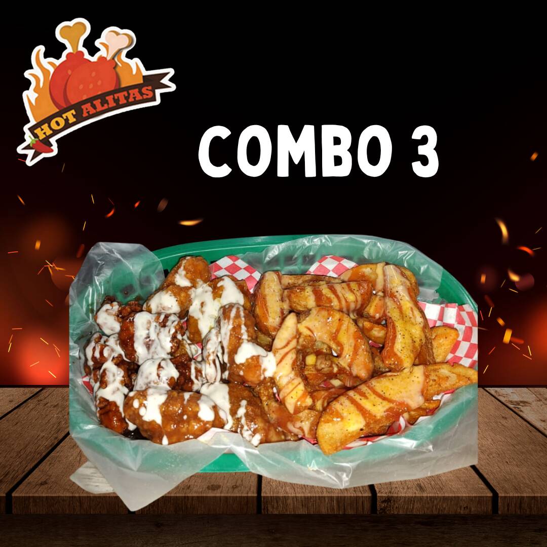 1 kilo de alitas + 1 ord. de boneless +1 ord. papas gajo +1 ord. de 5 pzas. de dedos de queso + 1 ord. de 10 pzas. de aros de cebolla