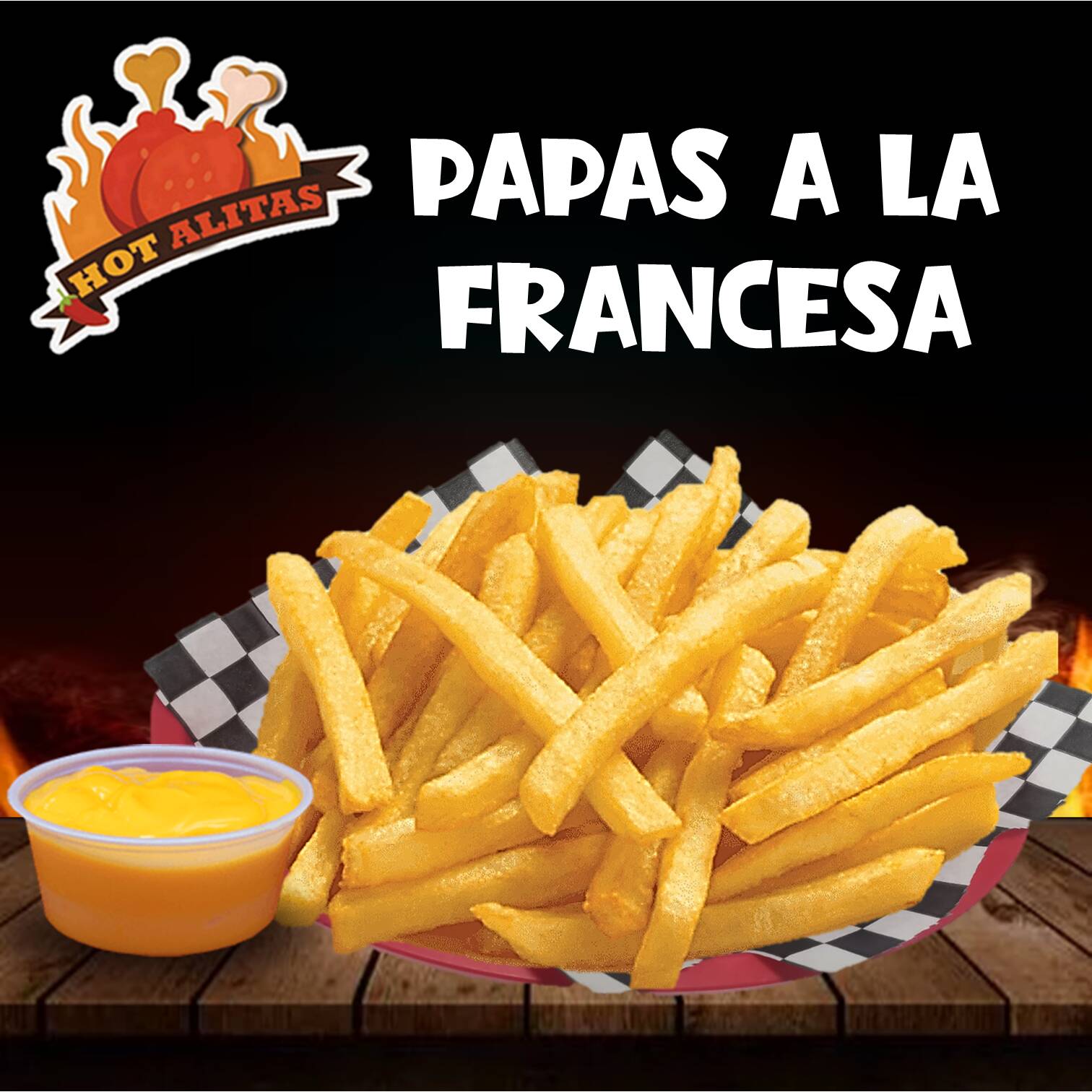Orden de 6 alitas + orden papas gajo.