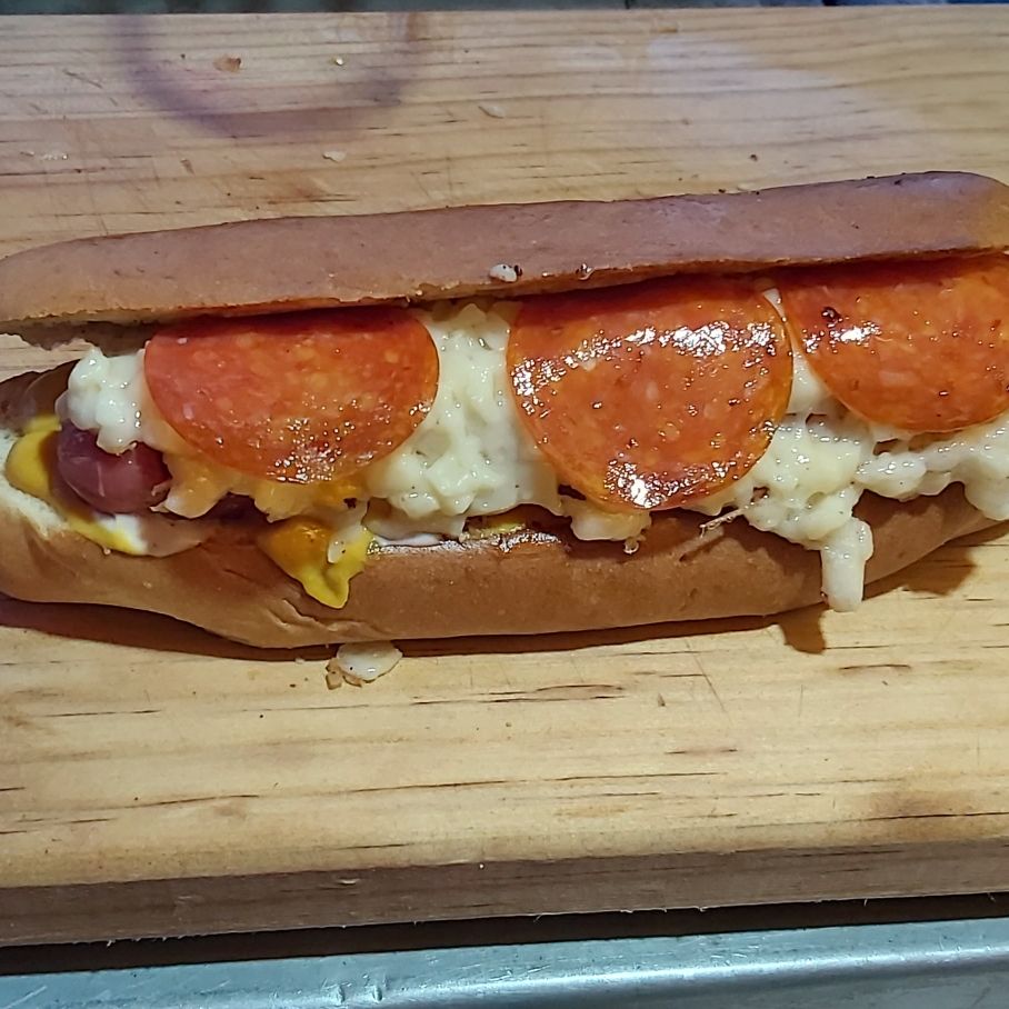 Delicioso pan artesanal, salchicha de pavo acompañada con queso y pepperoni.