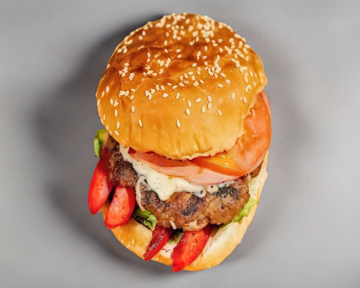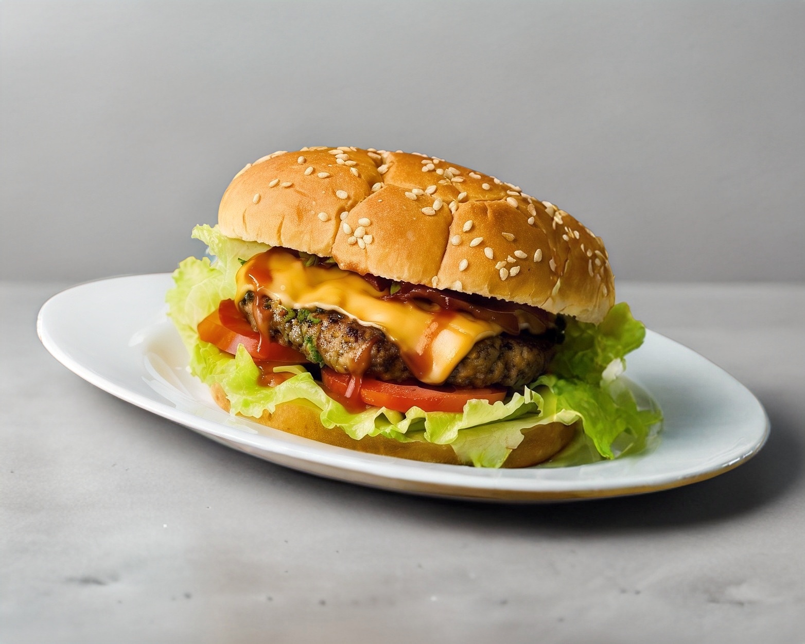 Hamburguesa con carne, lechuga, tomate y queso.