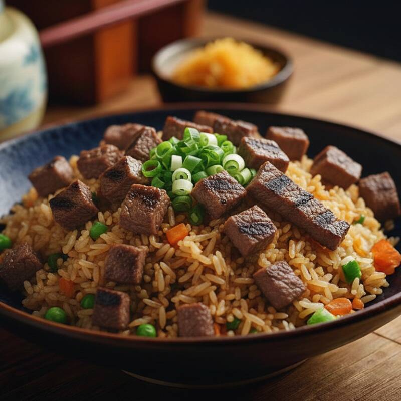 Arroz japones, arrachera 100 grms , con verduras(calabaza, zanahoria), soya y mantequilla de la casa