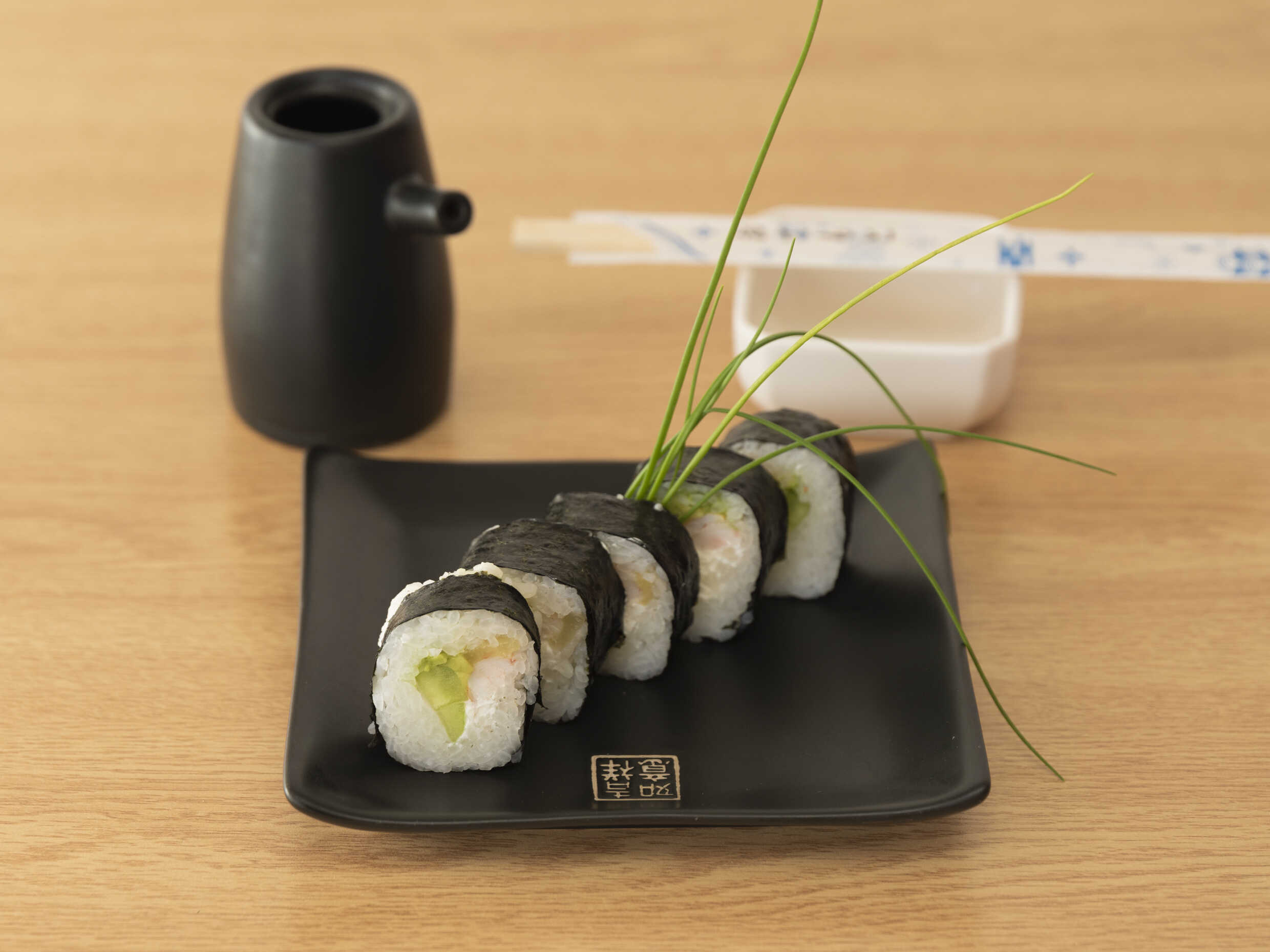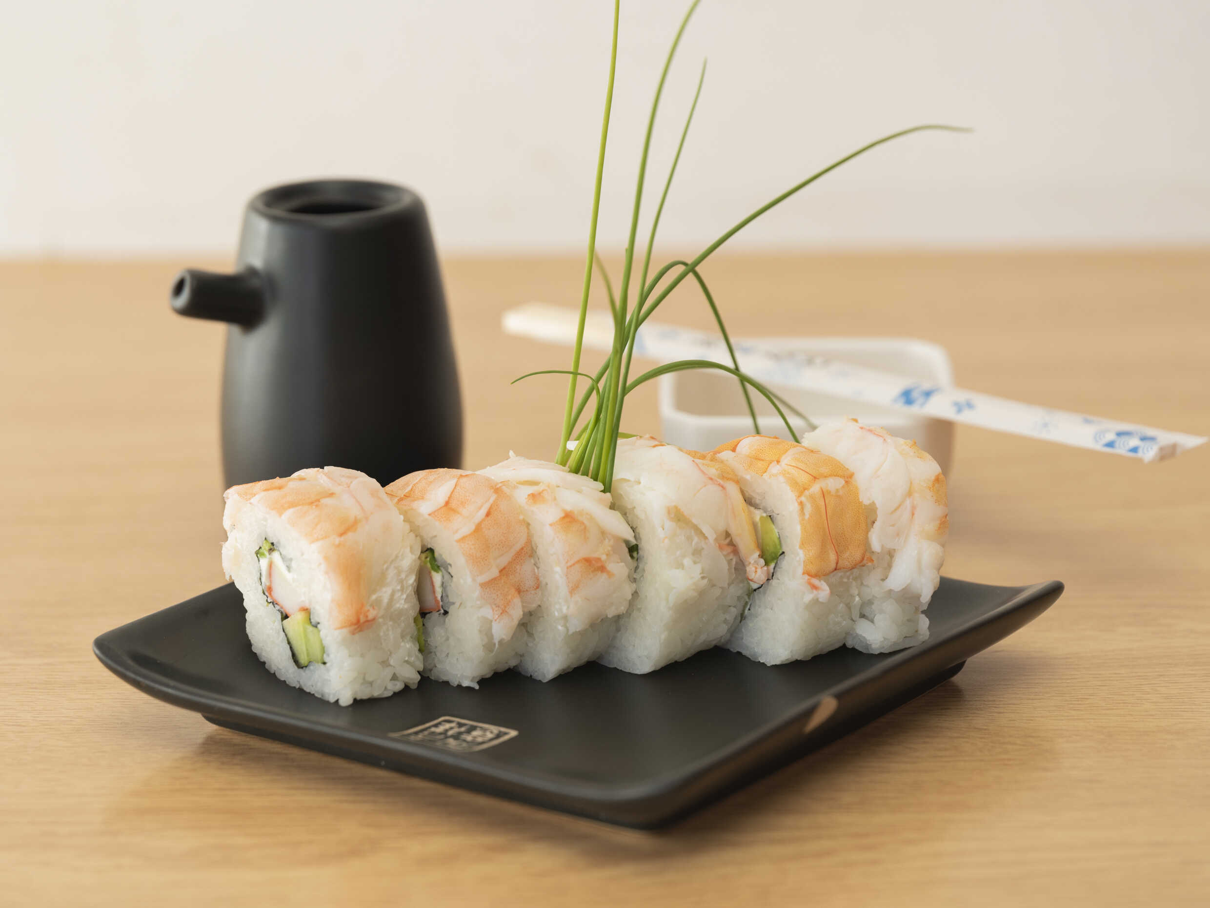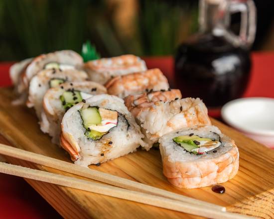 Camarón, queso, aguacate, pepino, Tampico por fuera.