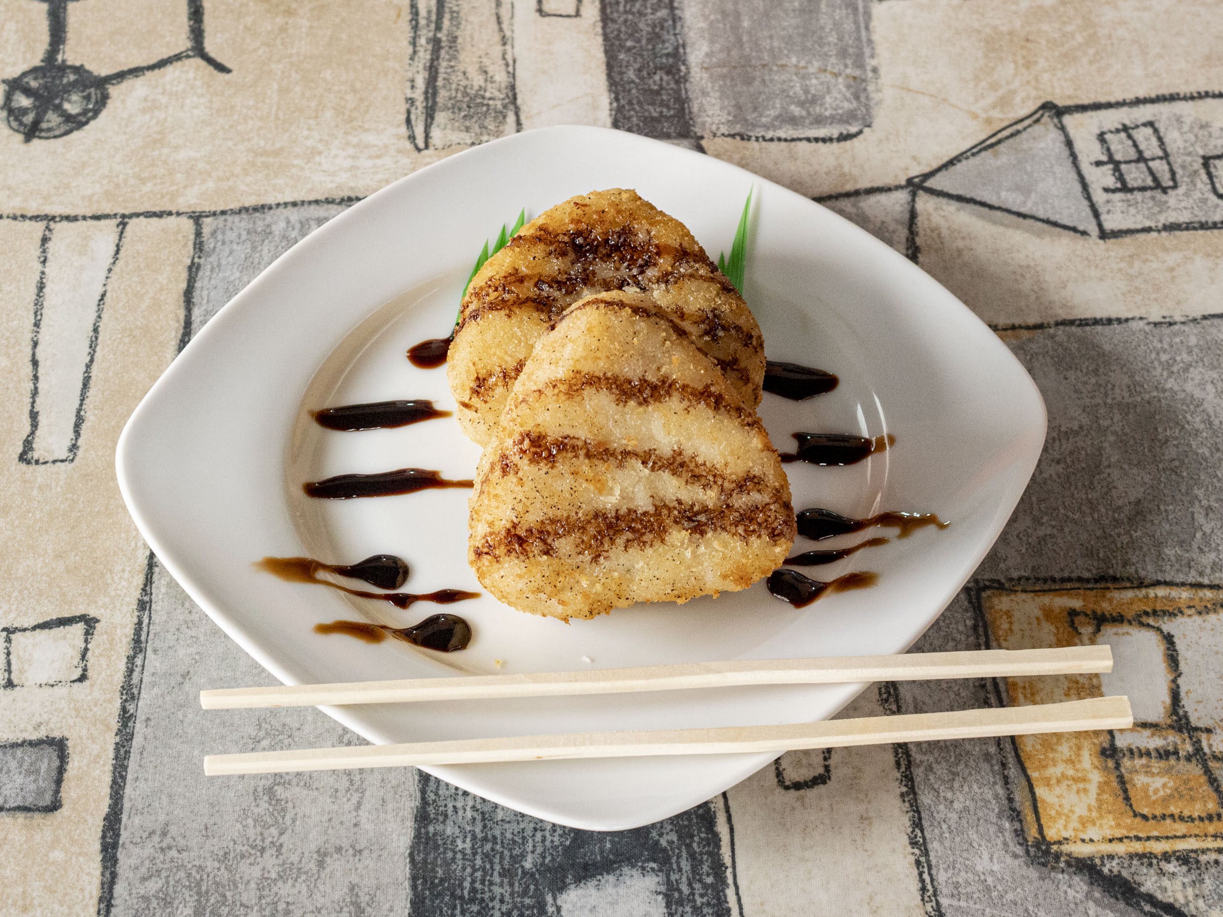 Bola de arroz, acompañado de pulpo. 2 unidades.