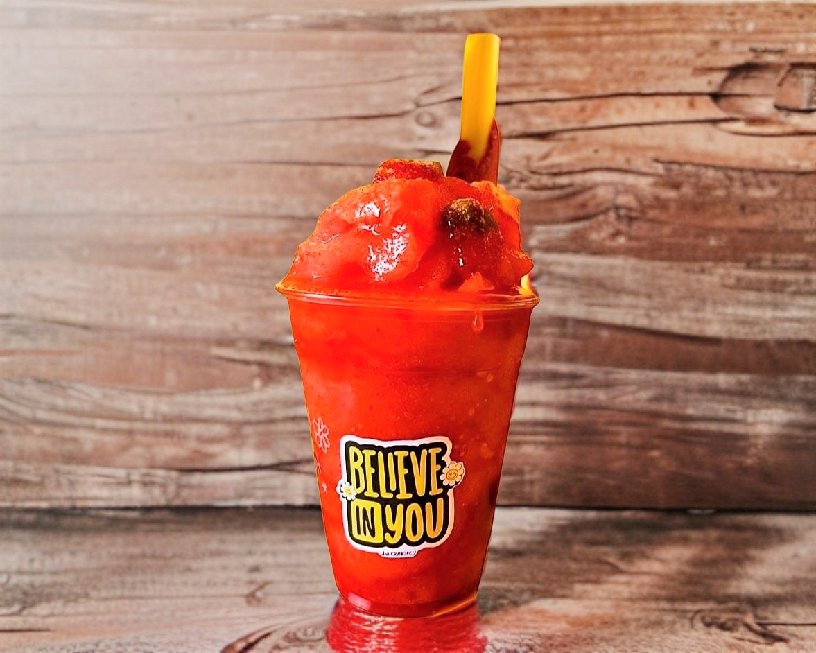 Deliciosa bebida a base de fresa natural, chamoy, miguelito y gomitas.